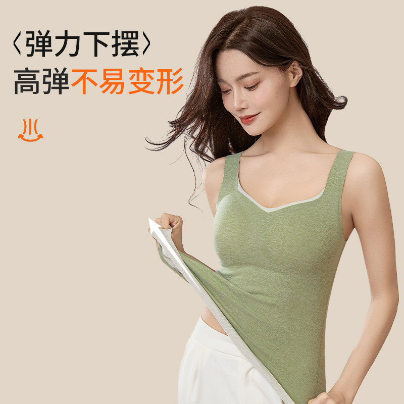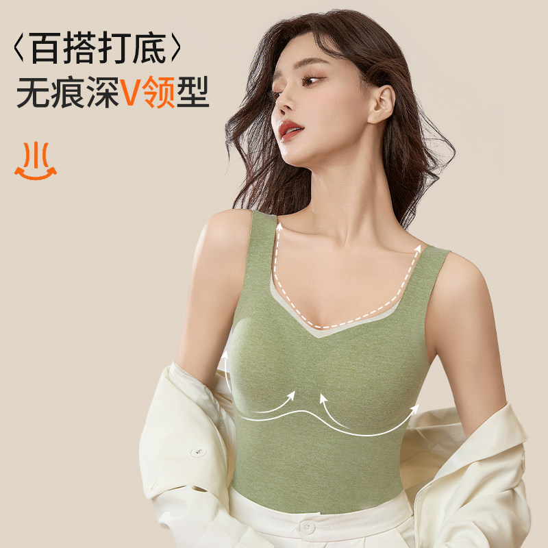 保暖无痕内衣女士带胸垫自发热背心女款秋冬季修身内搭打底衫上衣