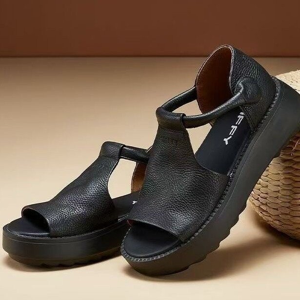 品牌真皮厚底凉鞋女2025夏季新款软底轻便不累脚防滑鱼嘴罗马鞋