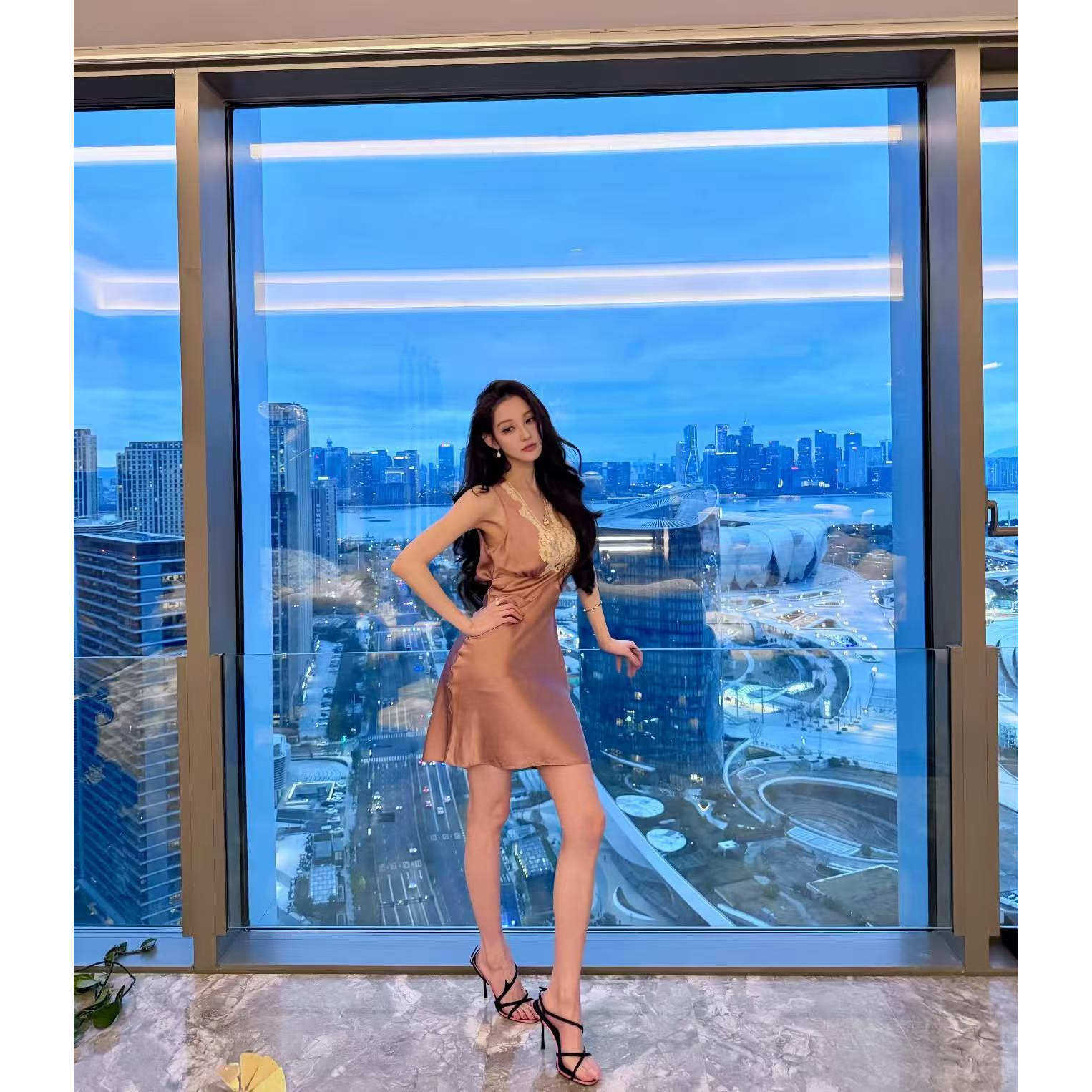 【生产】花三三同款性感短裙2026早春款法式蕾丝V领无袖连衣裙女