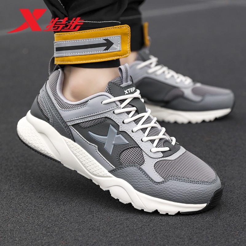 特步男鞋运动鞋春季官方正品透气鞋休闲鞋春秋网面复古男士老爹鞋