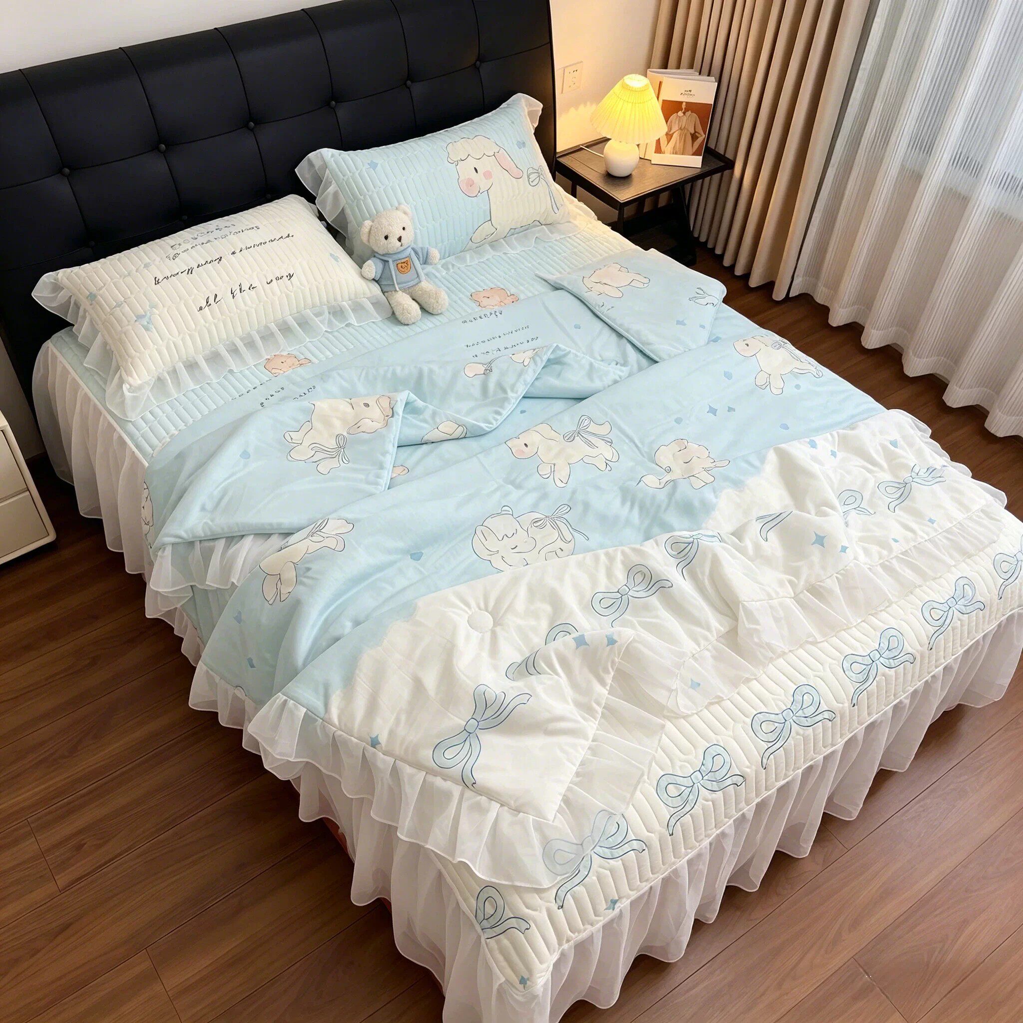 乳胶凉席四件套夏季冰丝空调席家用床上三件套可机洗凉感丝凉席