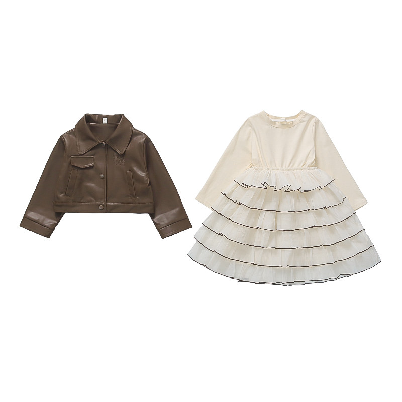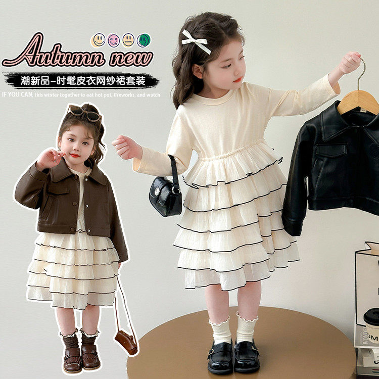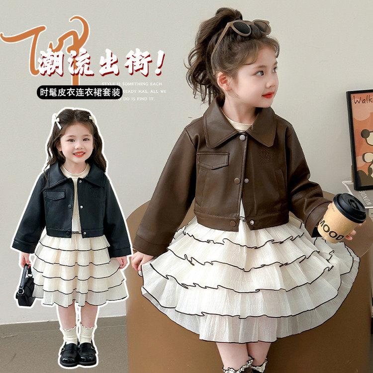 女童皮衣套装春装2026新款儿童春秋季洋气时髦连衣裙宝宝韩系裙子