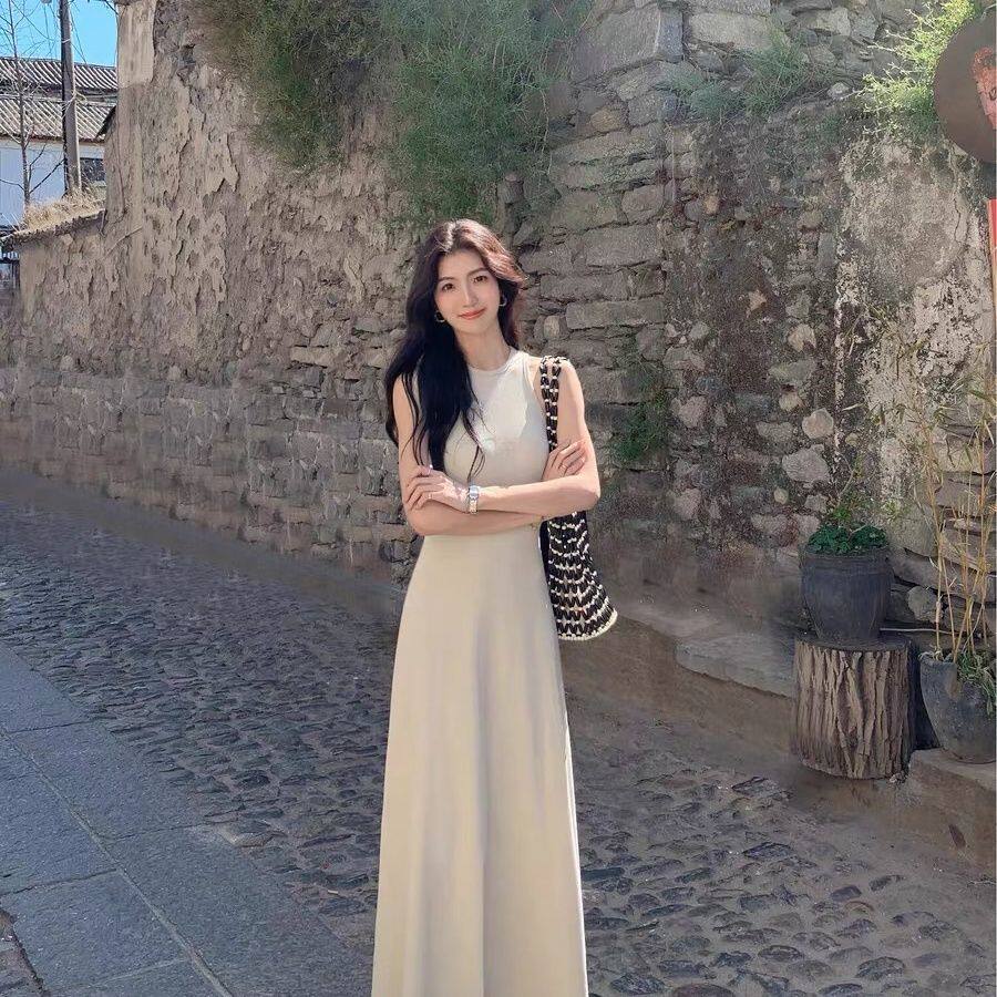 法式小众针织背心裙女2026夏新款修身气质无袖连衣裙A字收腰长裙