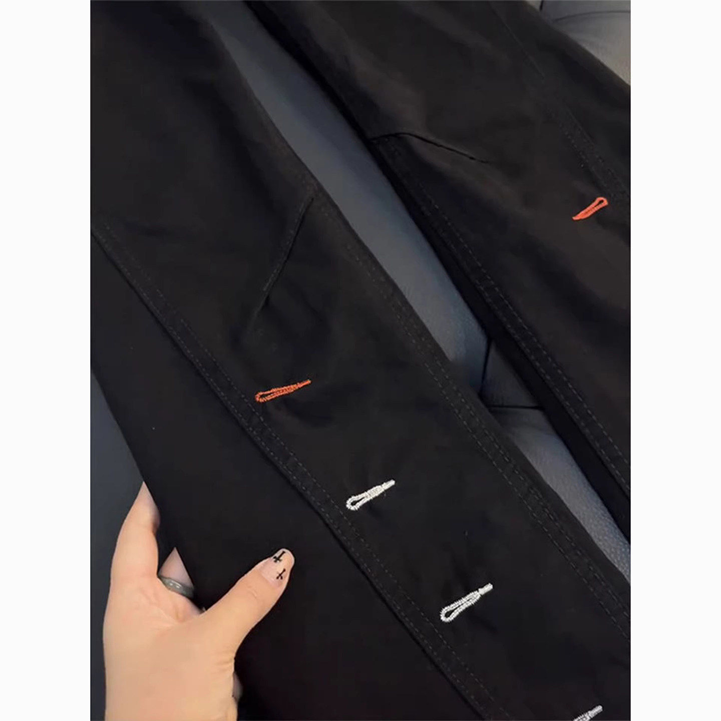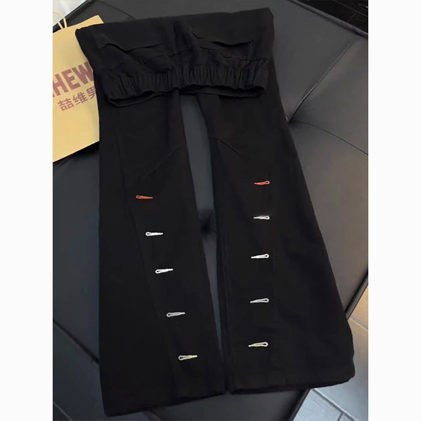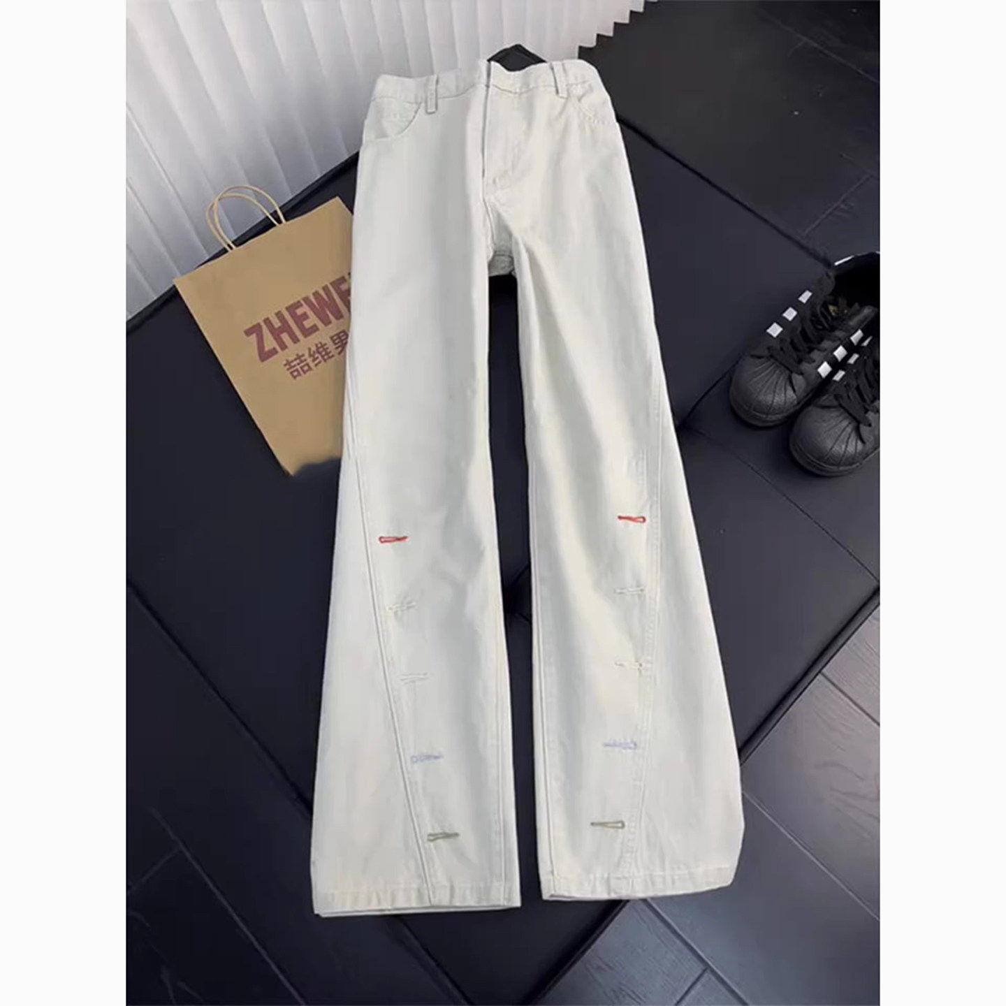 cleanfit纽扣刺绣牛仔裤男款夏季美式高街斜切裤子显腿长微喇裤