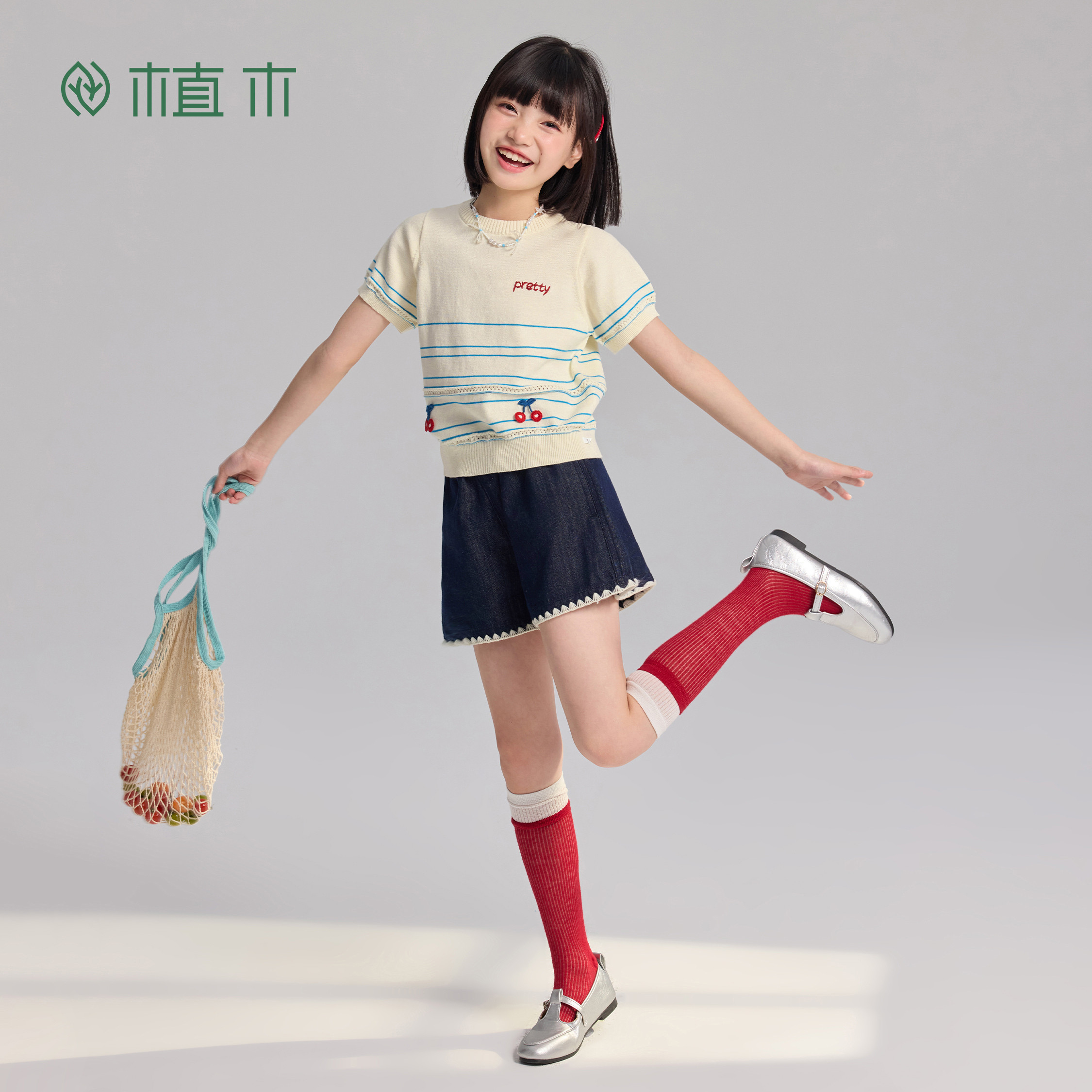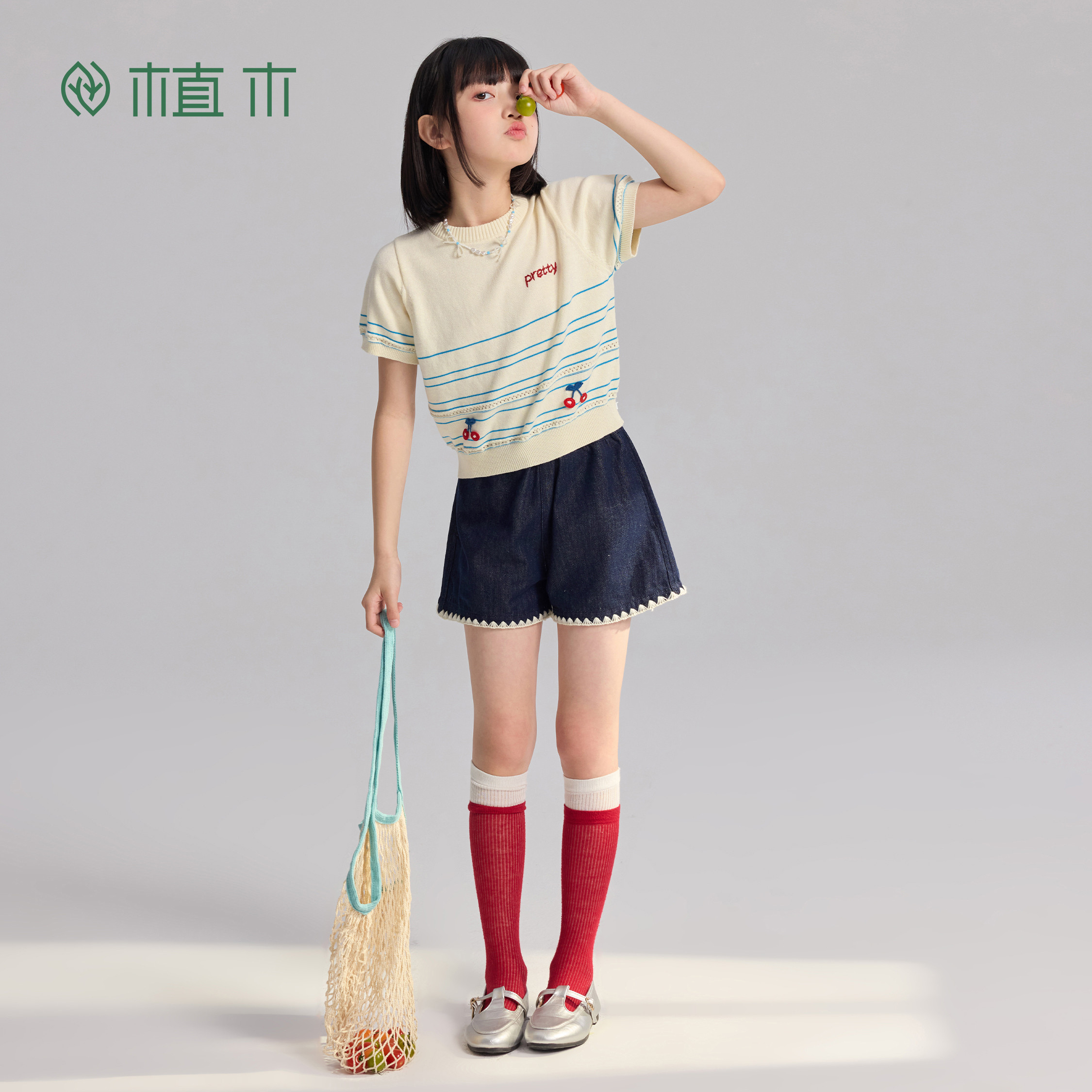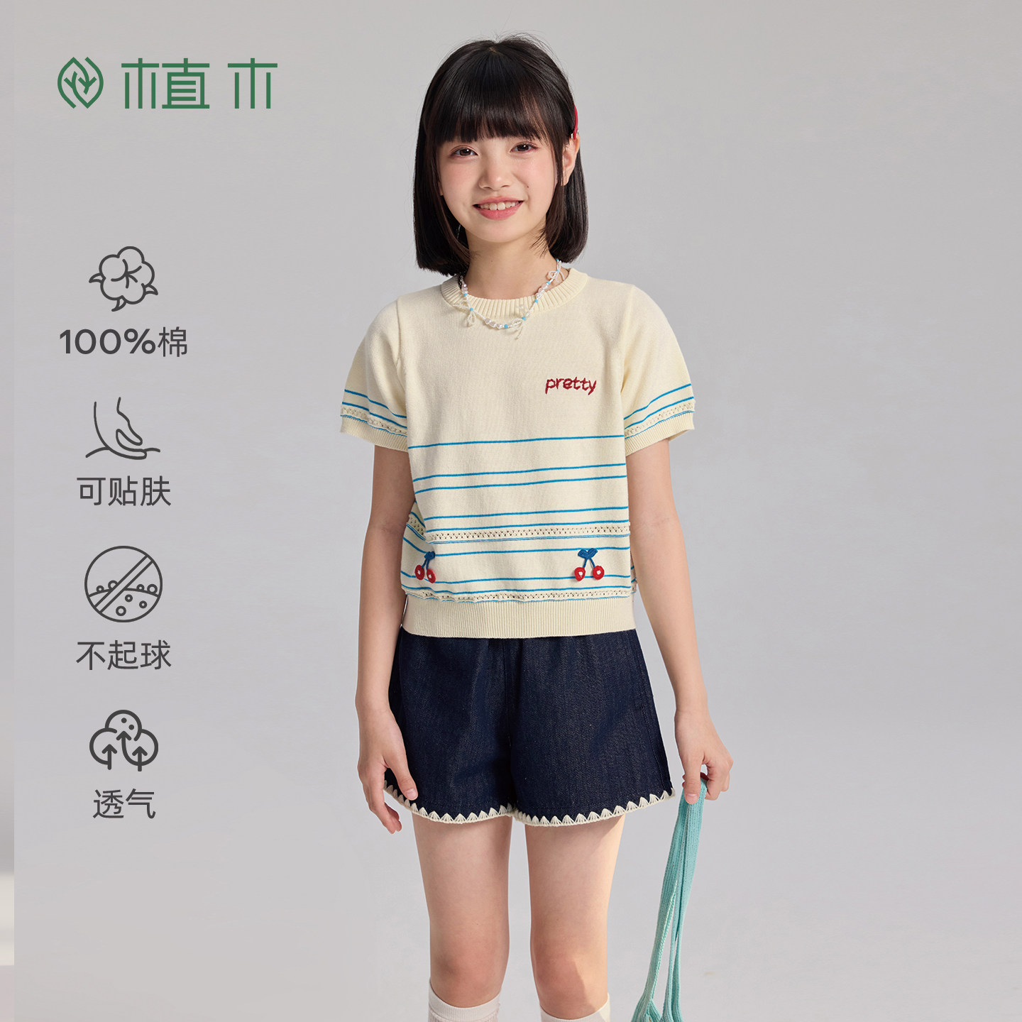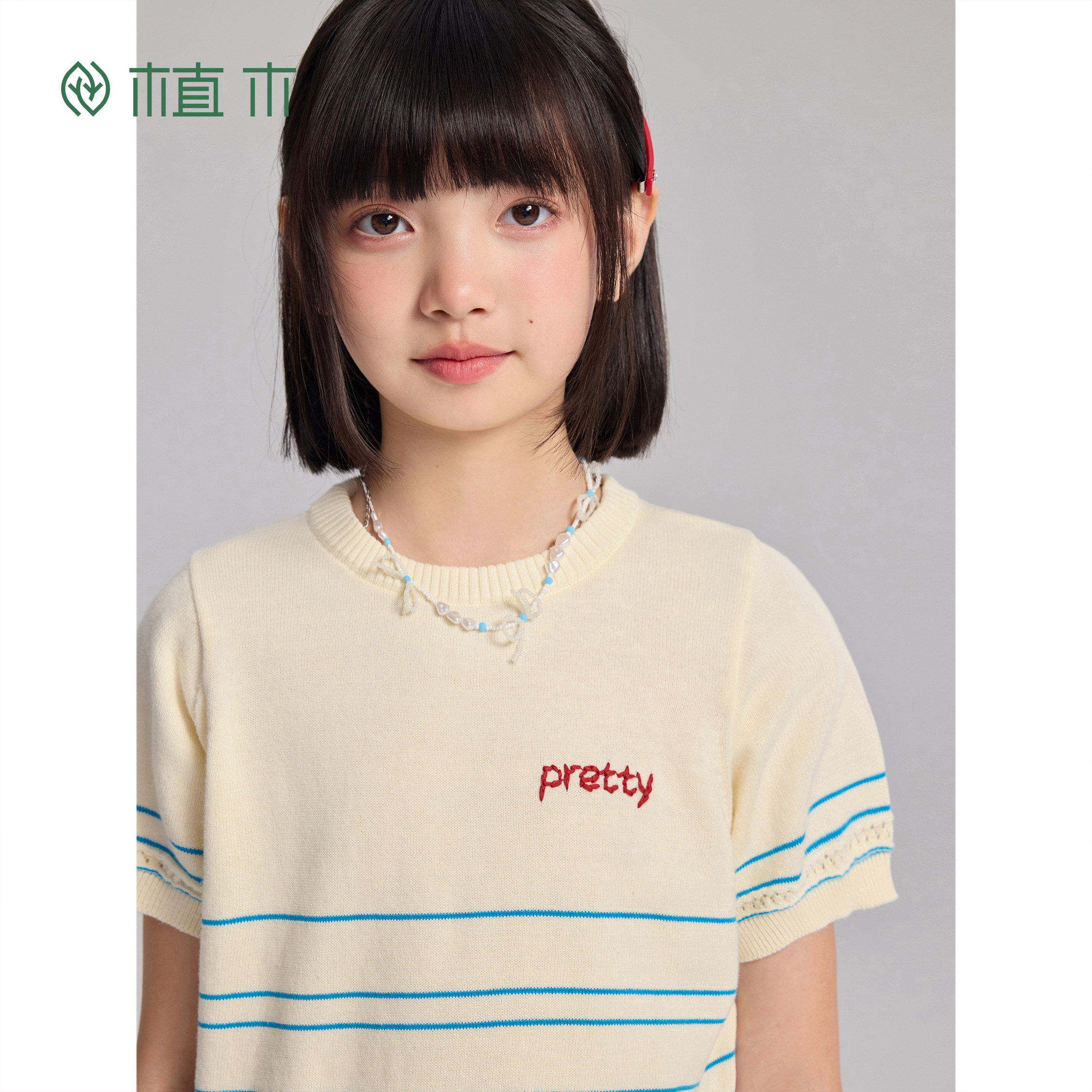 植木【果味晨风】纯棉泡泡袖针织T恤 女童T恤青少年2026夏季童装