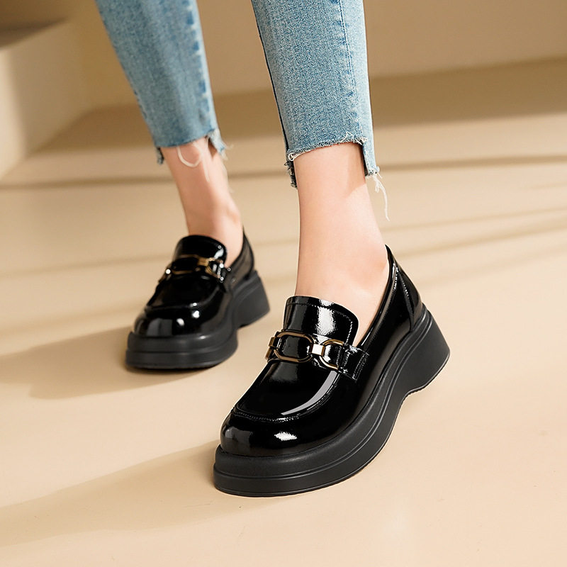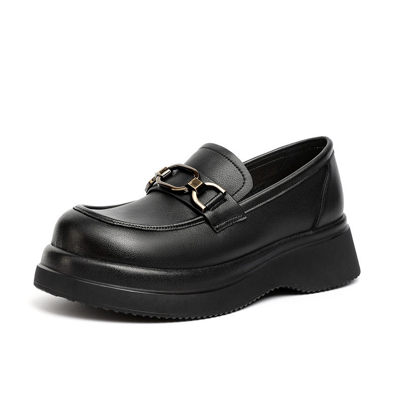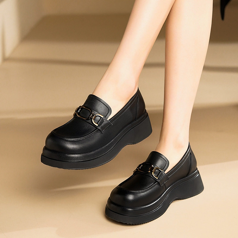 春秋新款真皮小皮鞋英伦风厚底头层牛皮单鞋大码复古平底乐福鞋女