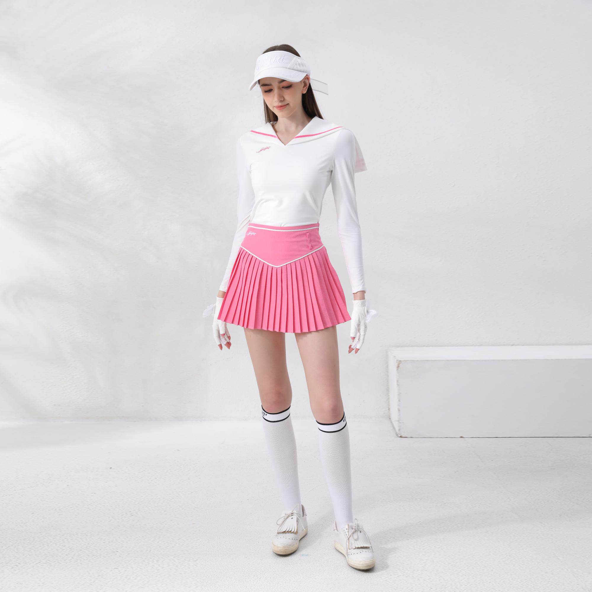 春秋季高尔夫女装长袖裙子女网球上衣套装百褶裙防晒弹力运动衣服