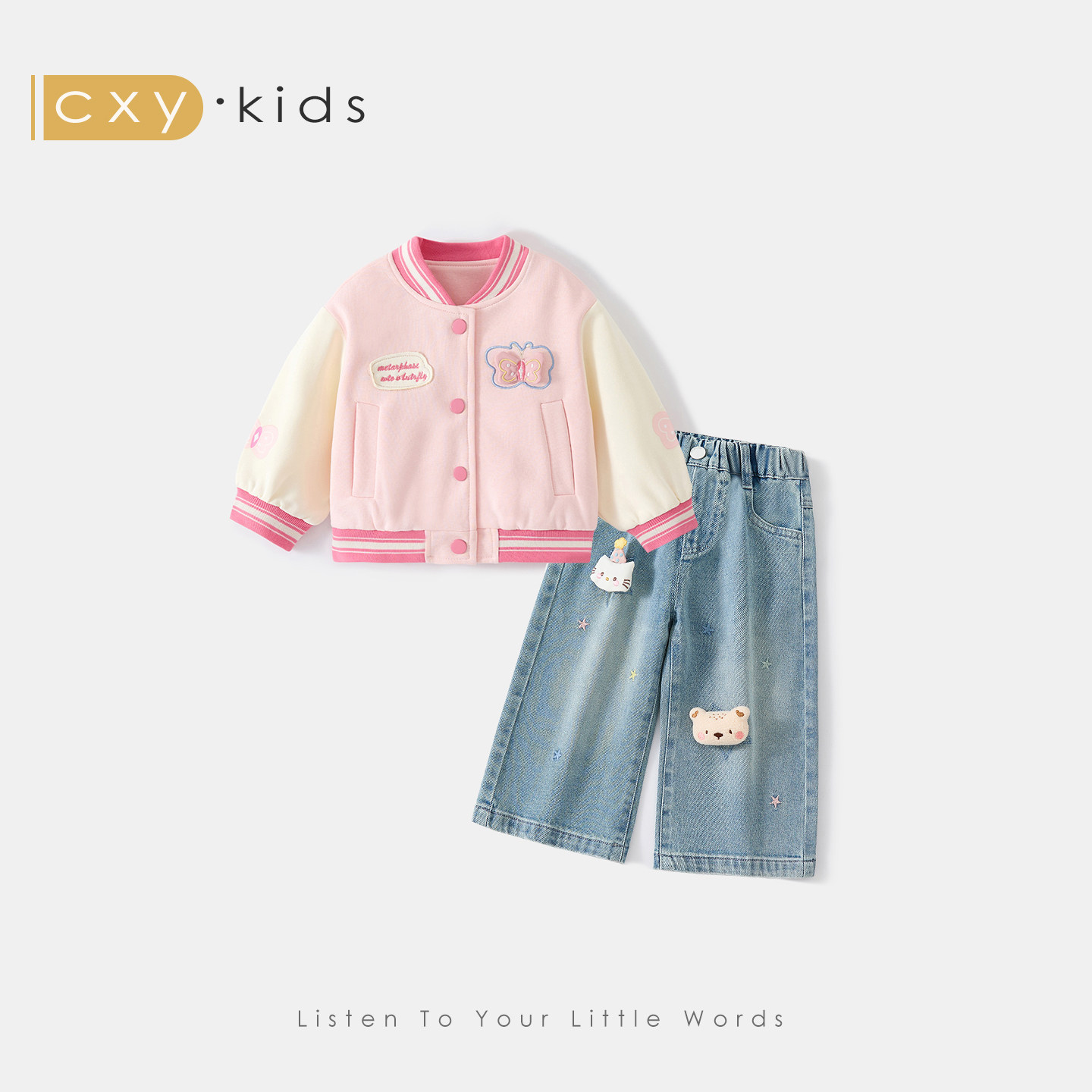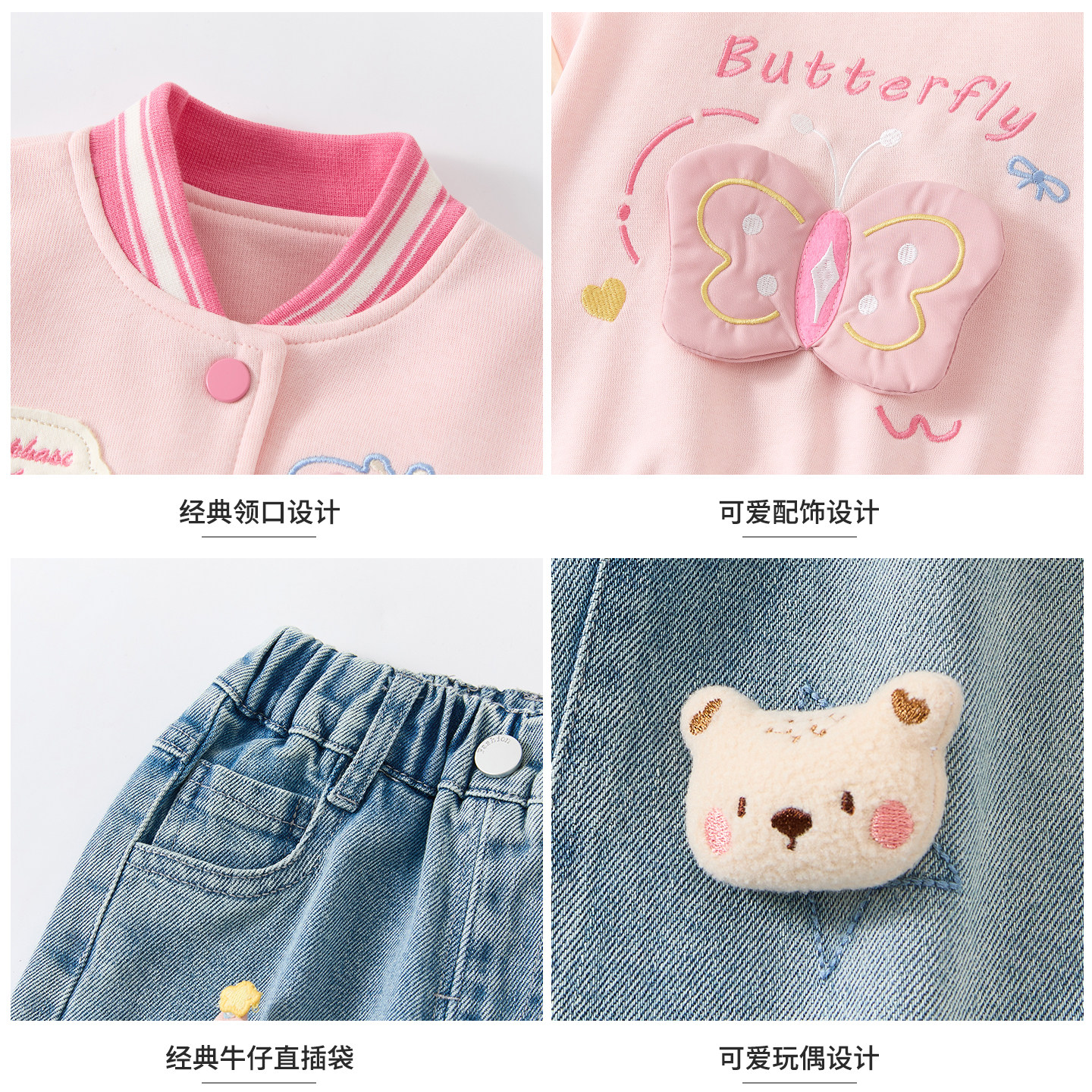 女童韩系高级感穿搭套装2026新款春装儿童棒球服洋气宝宝牛仔裤子