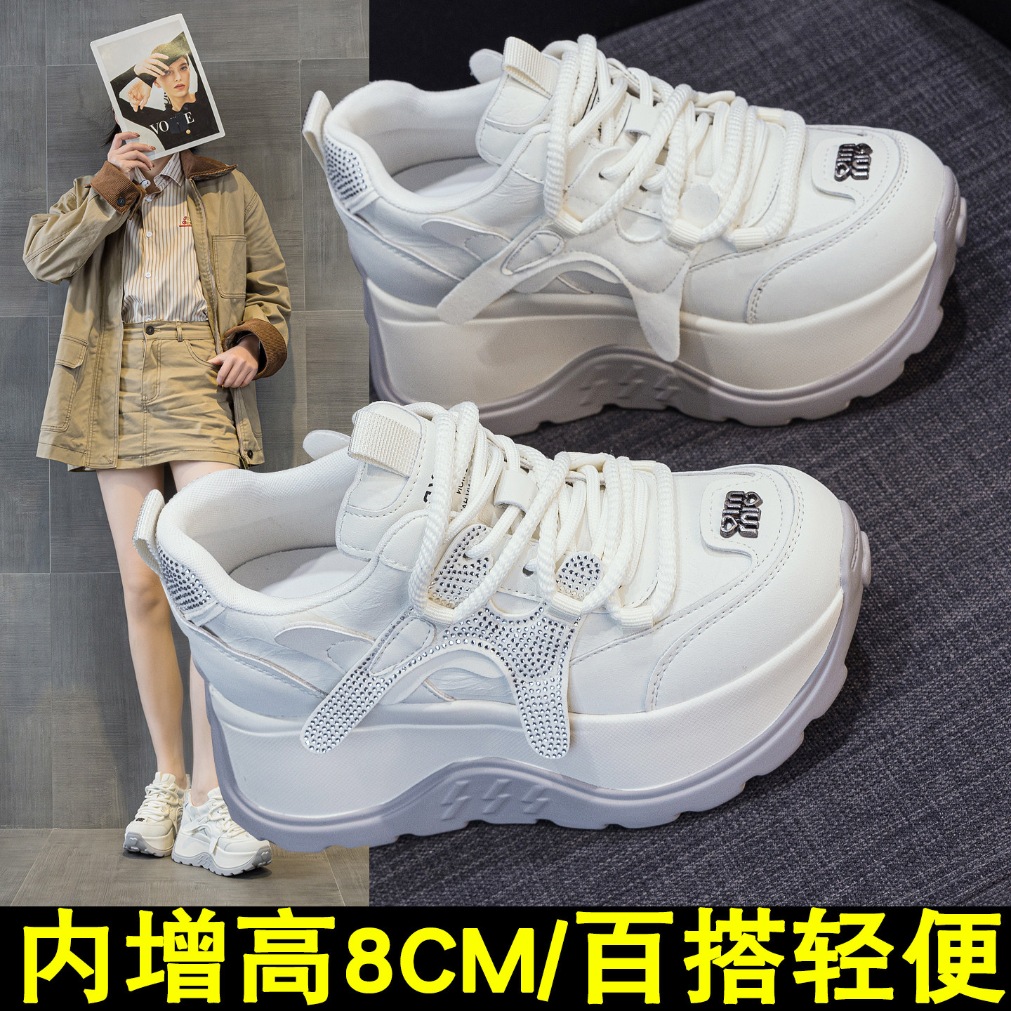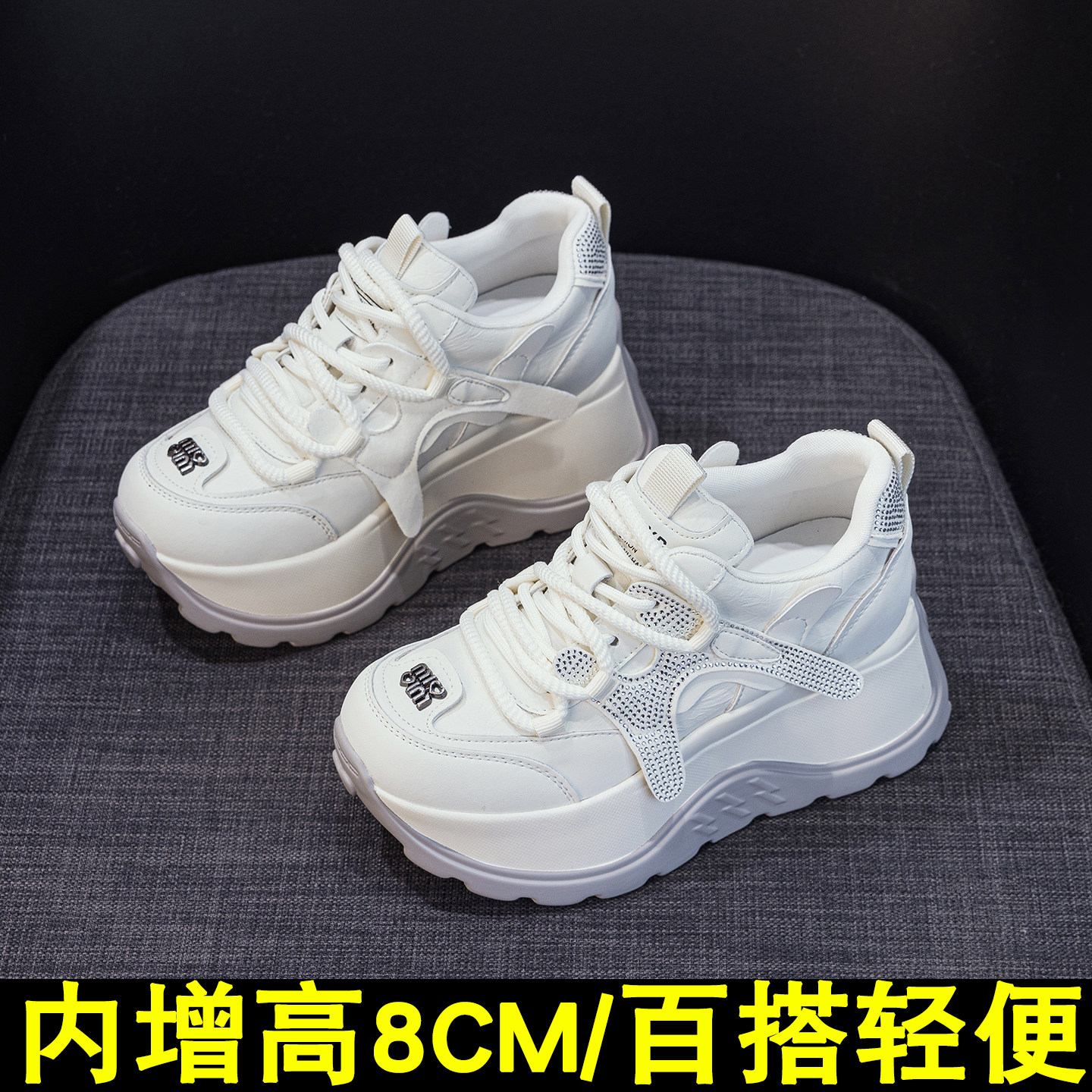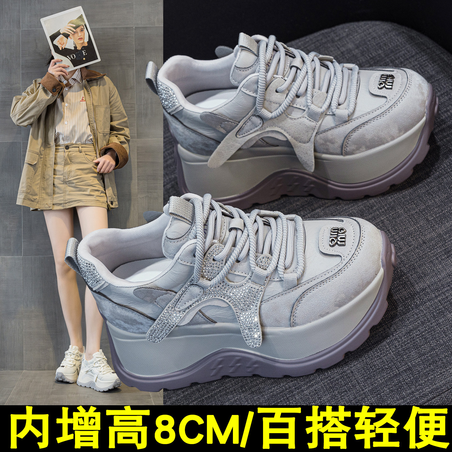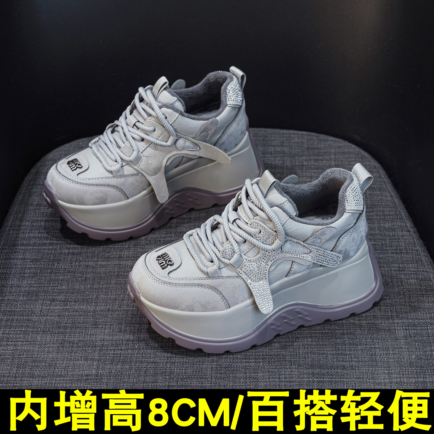 厚底老爹鞋女8cm松糕小个子阿甘2026春季新款时尚德训内增高女鞋