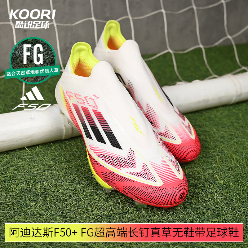 酷锐足球阿迪达斯F50+ FG超高端长钉真草无鞋带足球鞋男IE1251