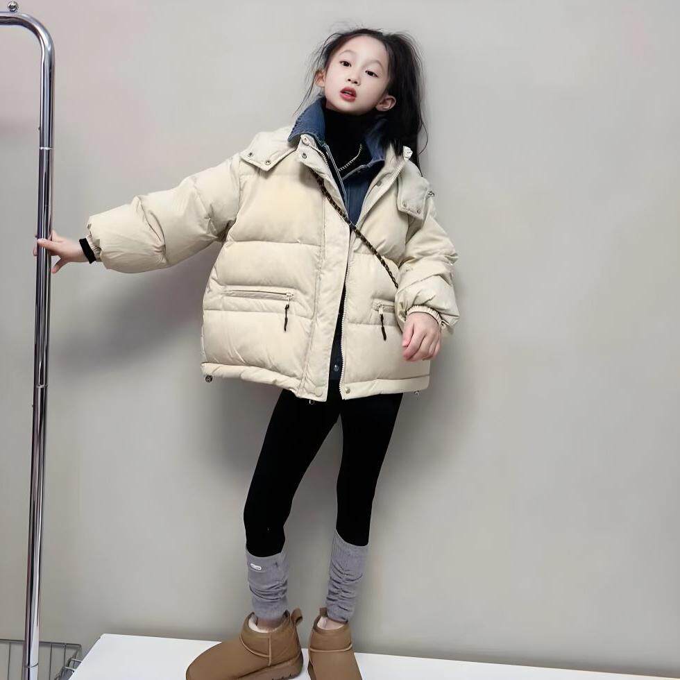 女童棉服冬季2026新款洋气时髦中大童假两件短款宽松面包服外套潮