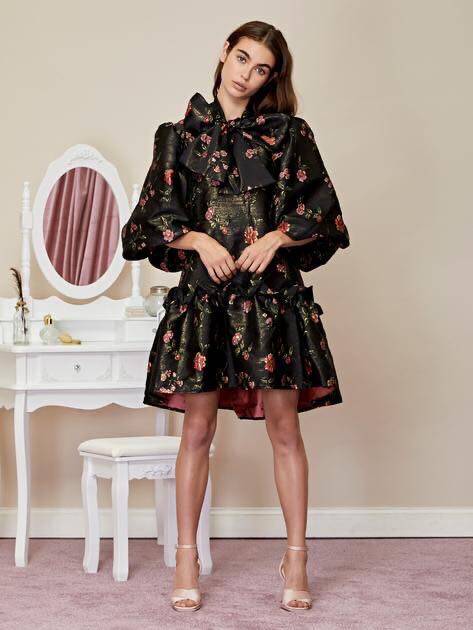 连衣裙女春秋新款提花长袖灯笼袖碎花宽松a型法式套头小个子a字裙