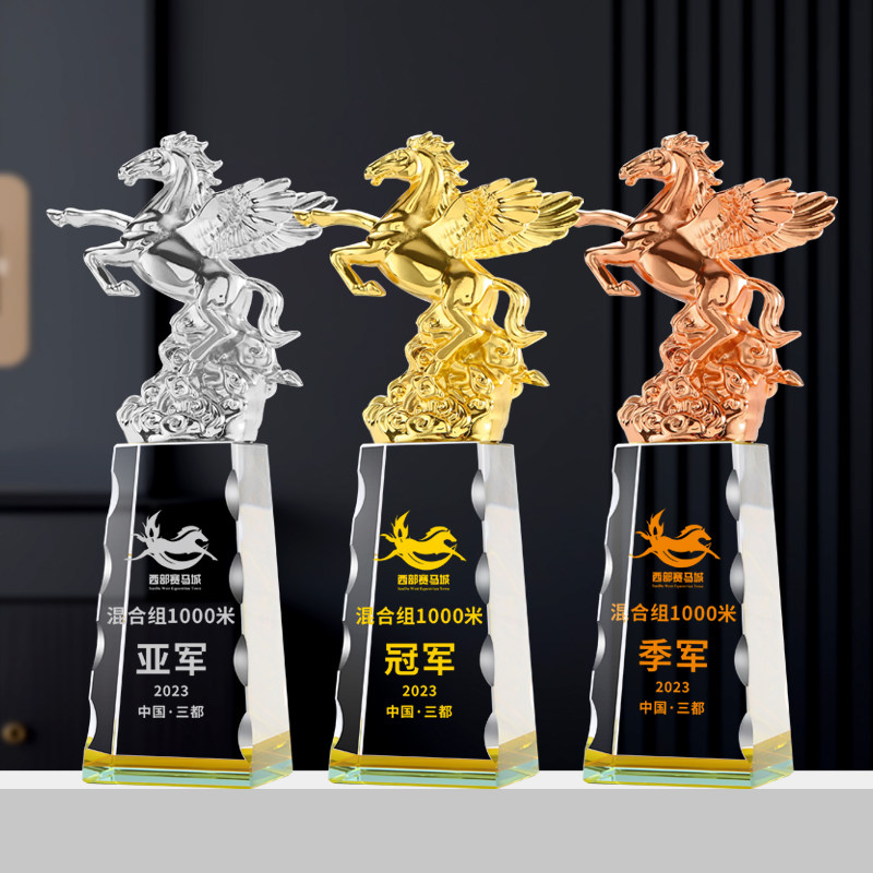 311线报网描述:高档新款金属马形状奖杯定制年终奖最佳礼品