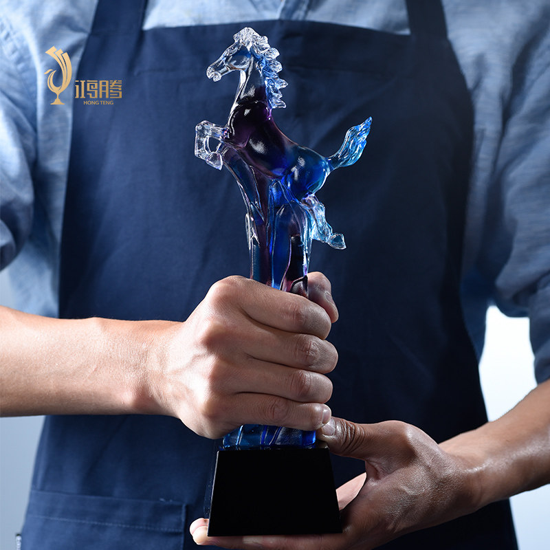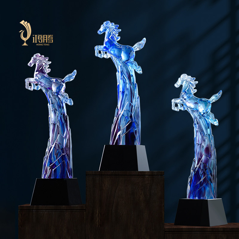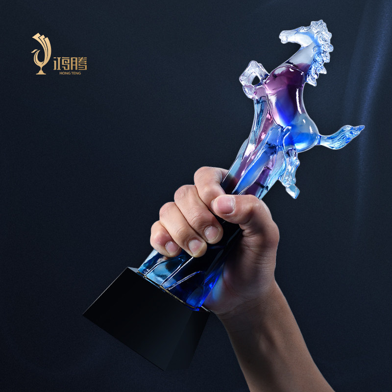马琉璃奖杯定制定做年会年终水晶奖杯企业公司优秀员工制作刻字