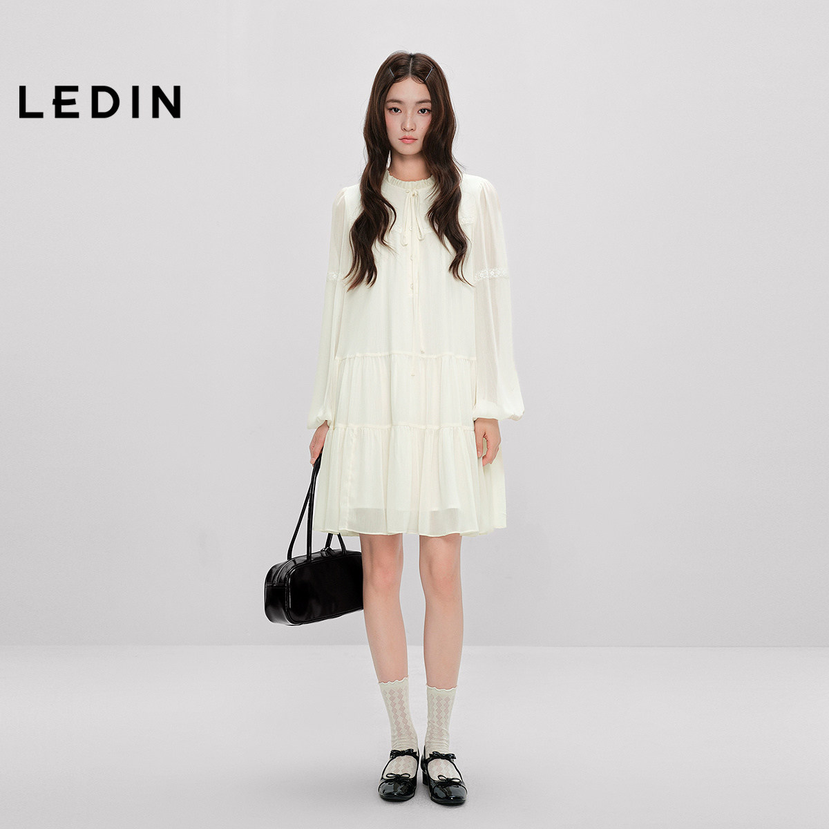 【商场同款】乐町甜美长袖连衣裙女装2025秋季新款裙子C1FAF3401