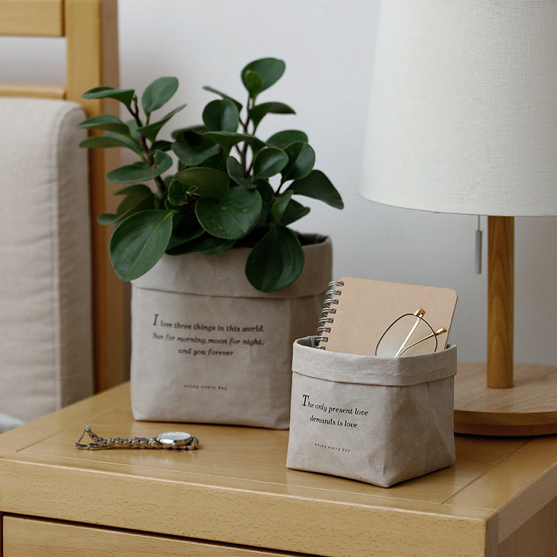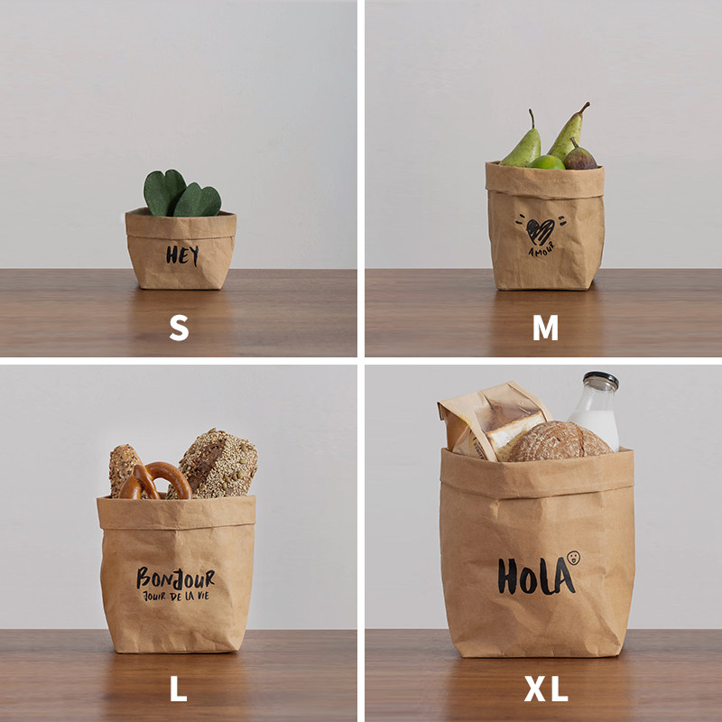 霜山牛皮纸收纳袋可水洗ins风花盆冰箱厨房水果食品包装环保纸袋