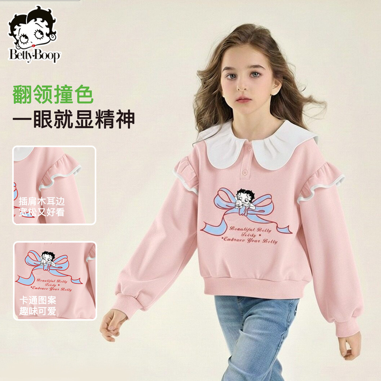 贝蒂女童春季潮流针织娃娃领卫衣2026年春款儿童中大童休闲上衣