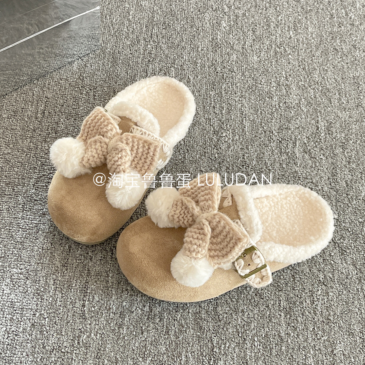鲁鲁蛋 毛毛勃肯鞋厚底半拖鞋外穿秋冬加绒穆勒鞋一脚蹬女鞋棉鞋