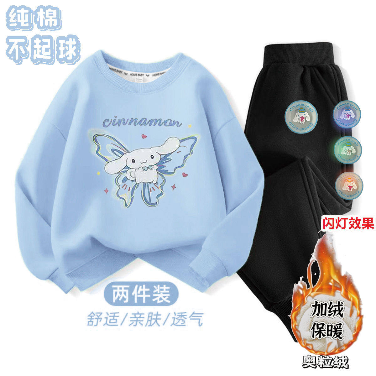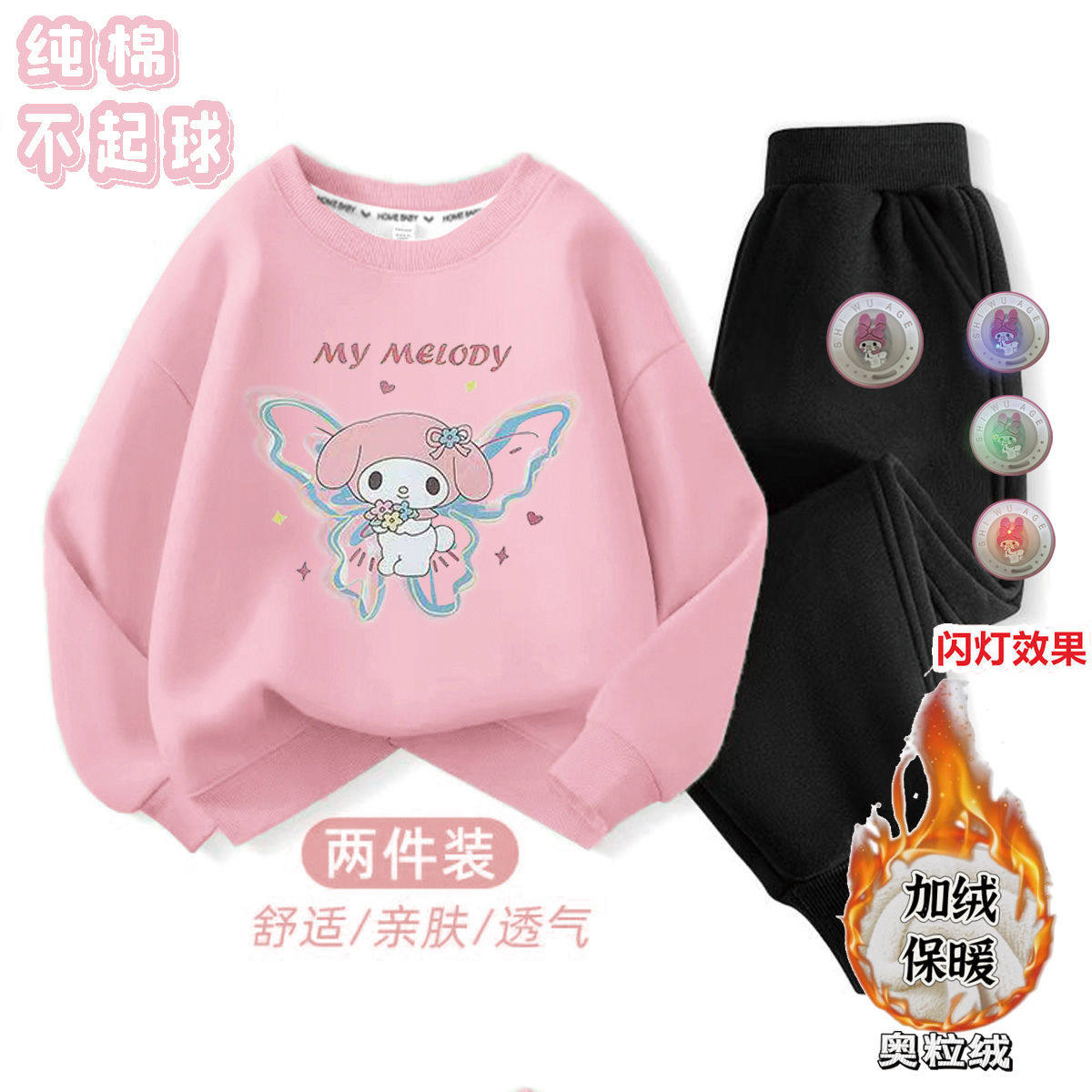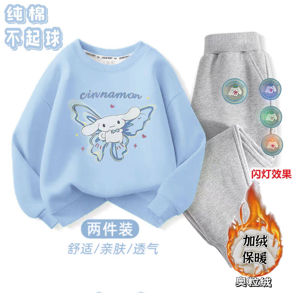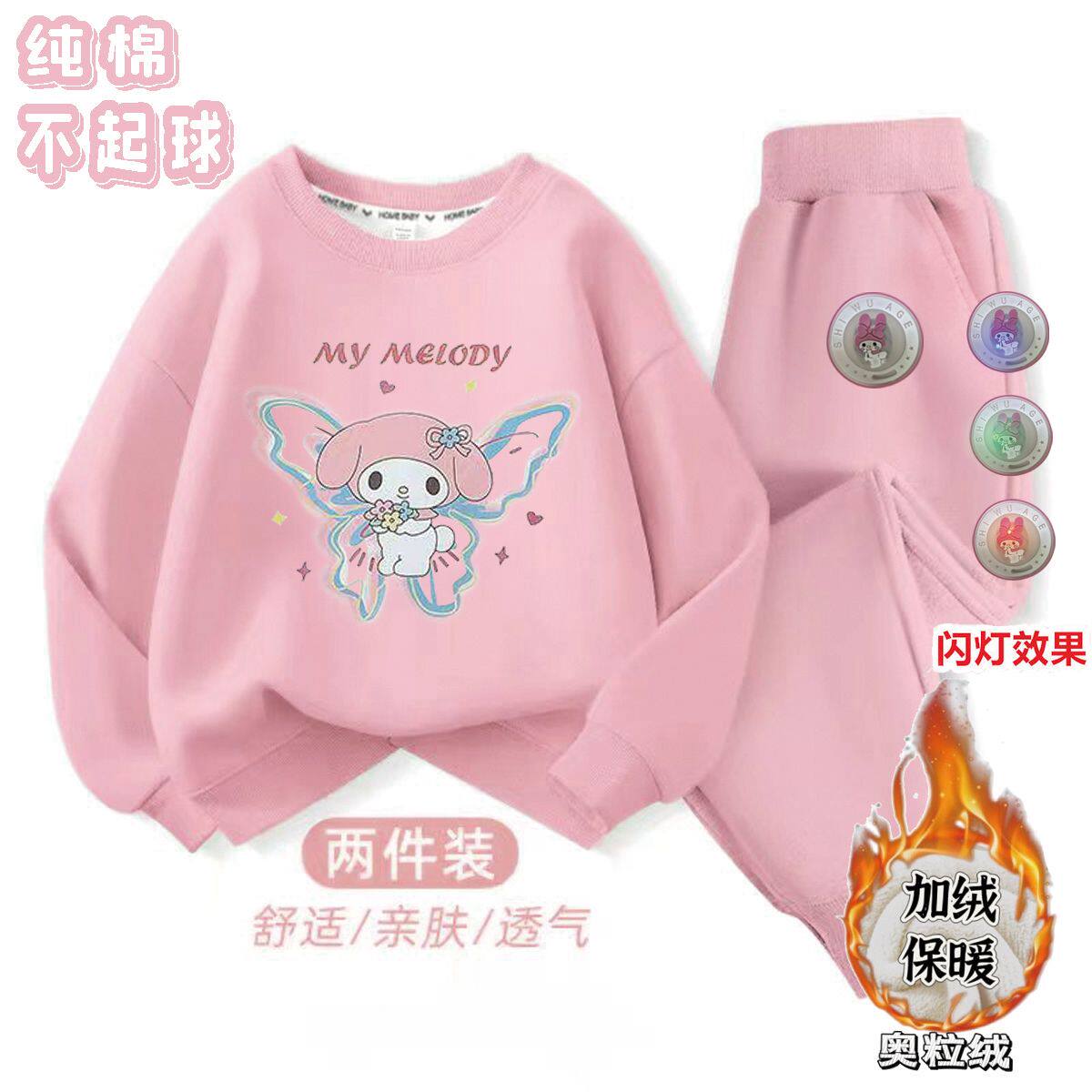 纯棉女童加绒奥粒绒卫衣加厚套装秋冬季儿童保暖库洛米一整套衣服