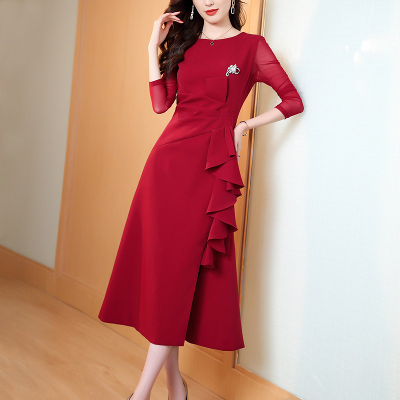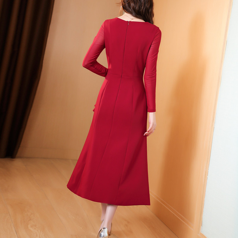 红色连衣裙女2025年秋冬新款正式场合宴会礼服气质收腰显瘦长款裙