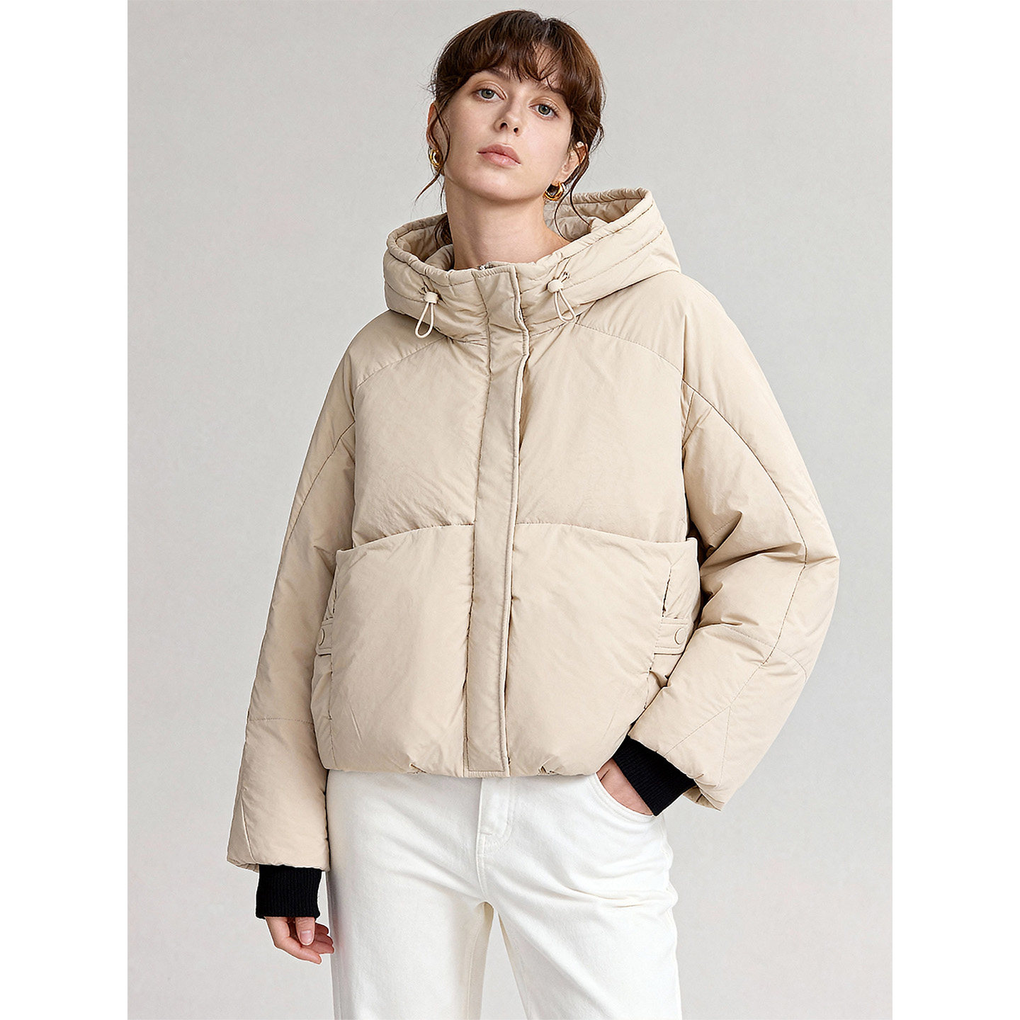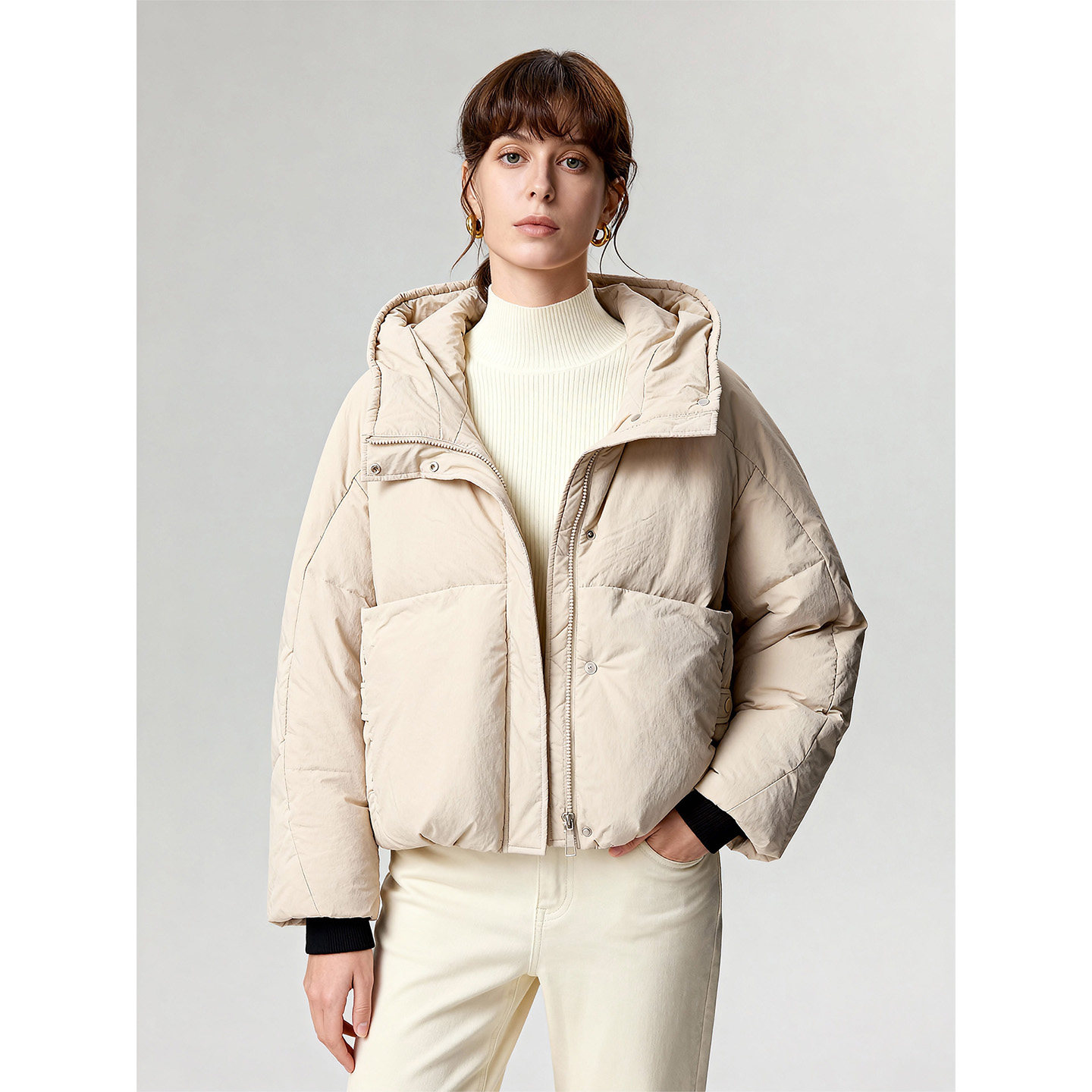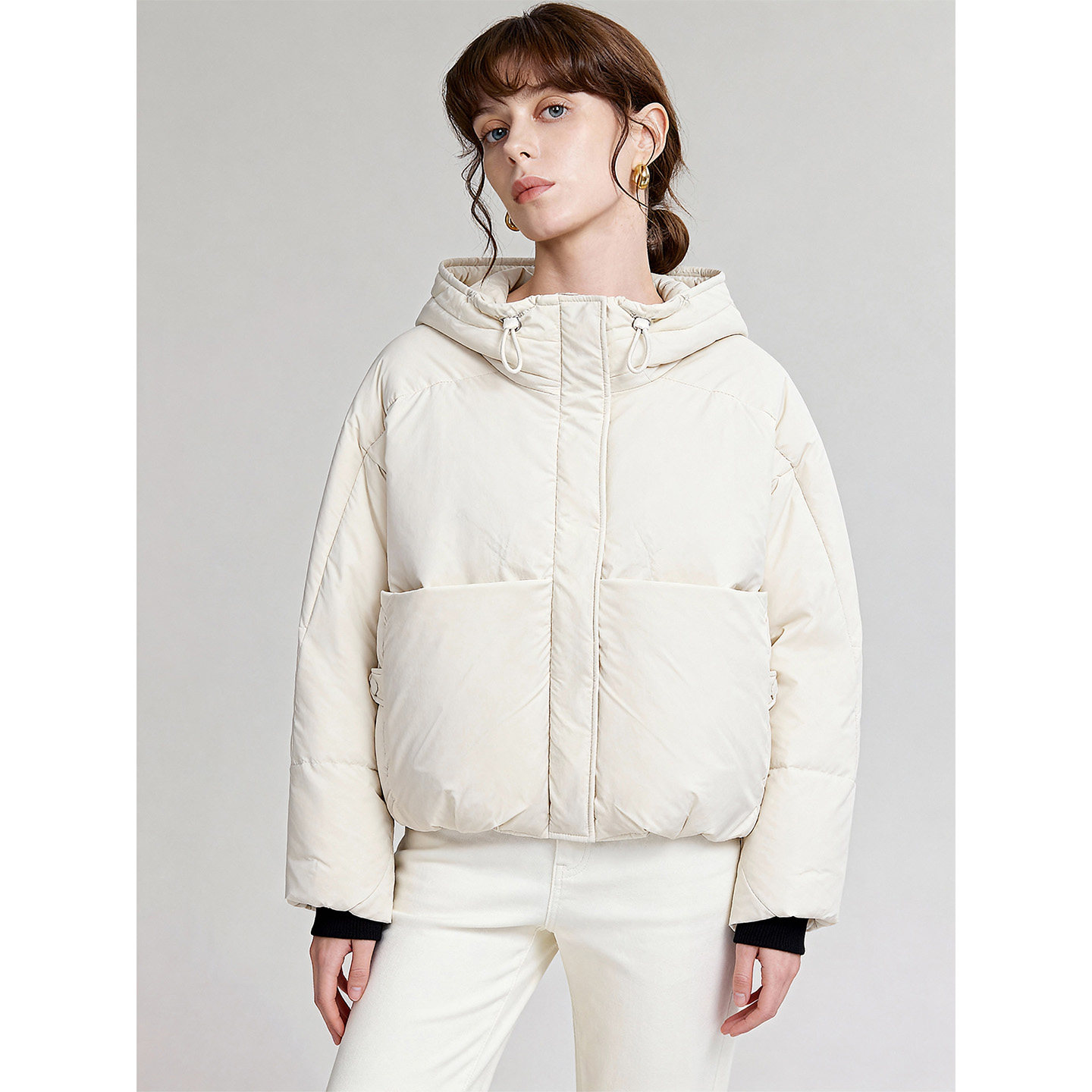 Basic House/百家好26连帽鸭绒加厚保暖短款羽绒服女冬季新款外套