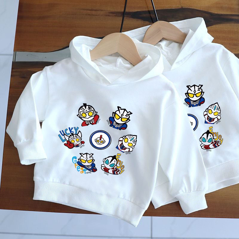 儿童薄款外套男童女童连帽卫衣宝宝白色春秋季洋气帽衫长袖打底衫
