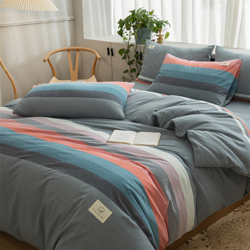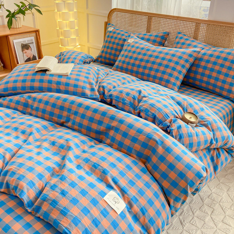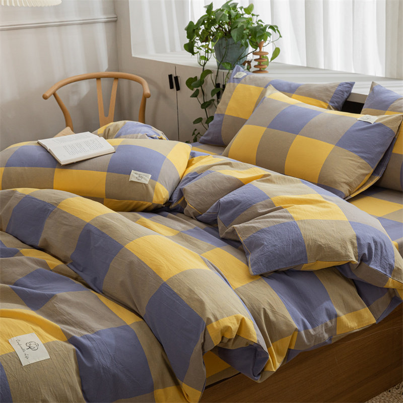 男生纯棉全棉色织水洗格子四件套简约风柔软双层纱布男孩床品套件