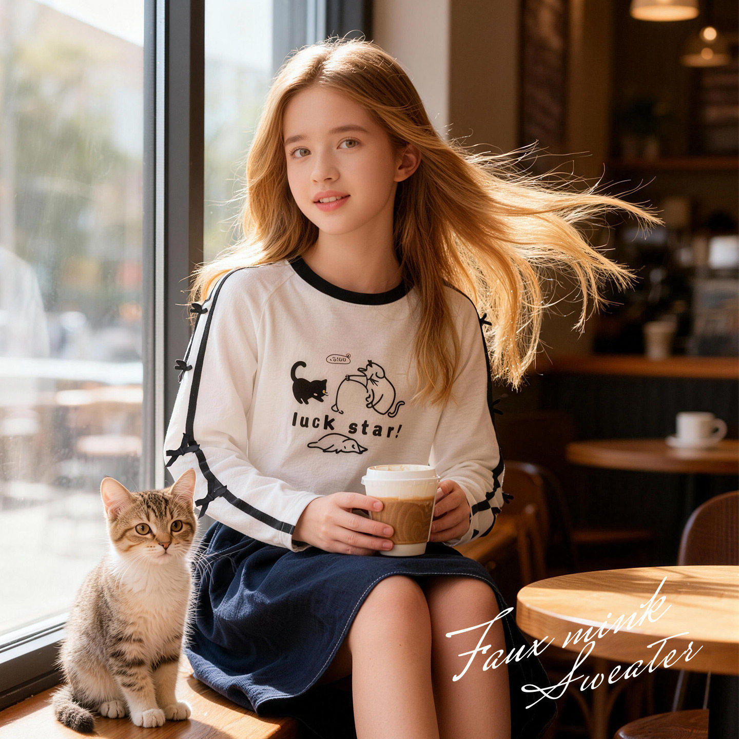 女童长袖T恤春装新款儿童纯棉打底衫中大童青少年洋气上衣春秋装