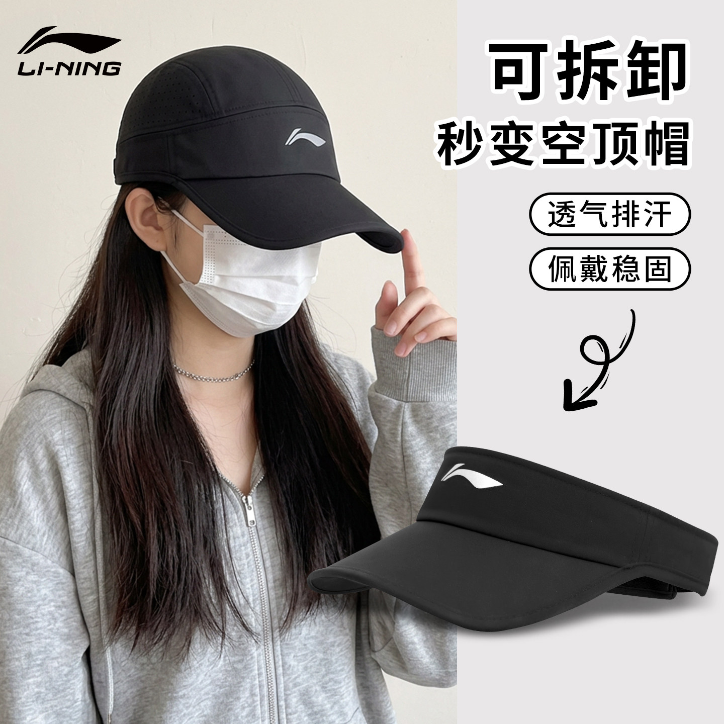 李宁跑步帽子女空顶帽男户外马拉松专业运动帽透气吸汗遮阳防晒帽