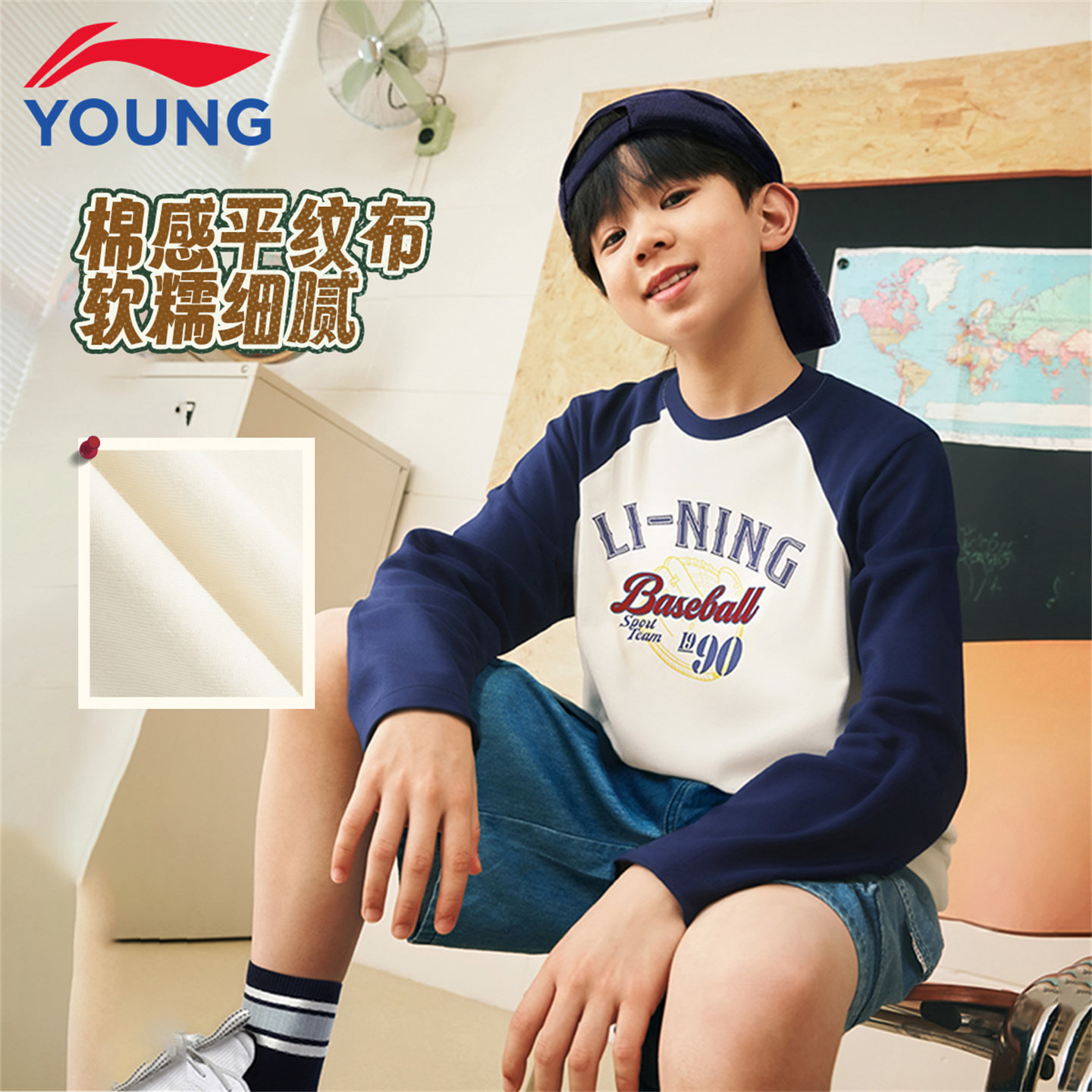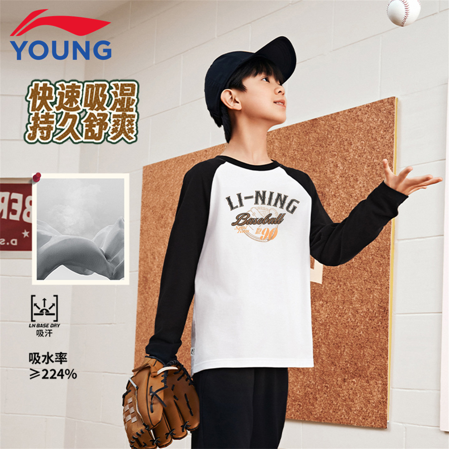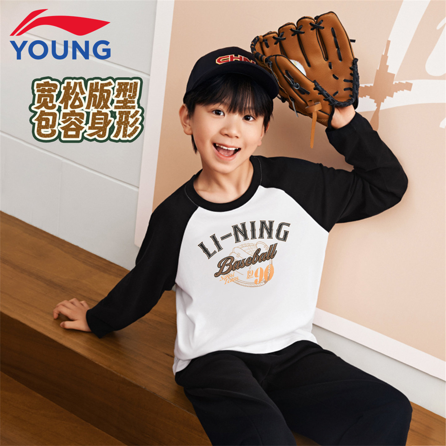 李宁儿童长袖T恤男女童春季新款棉感舒适宽松百搭青少年百搭上衣