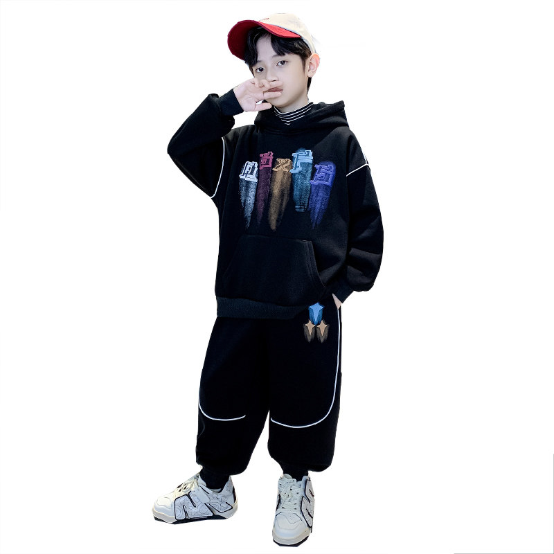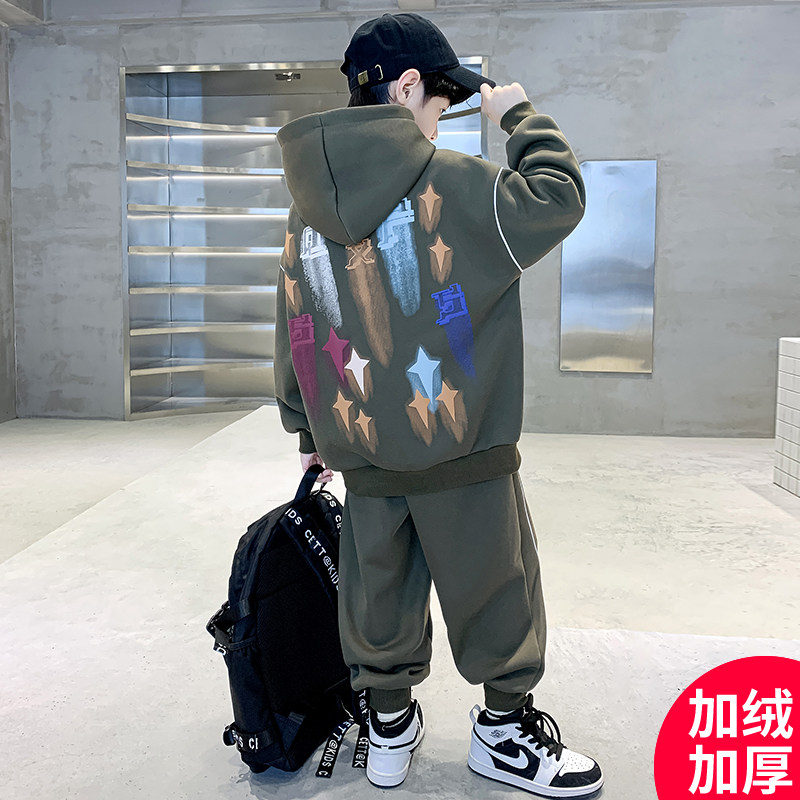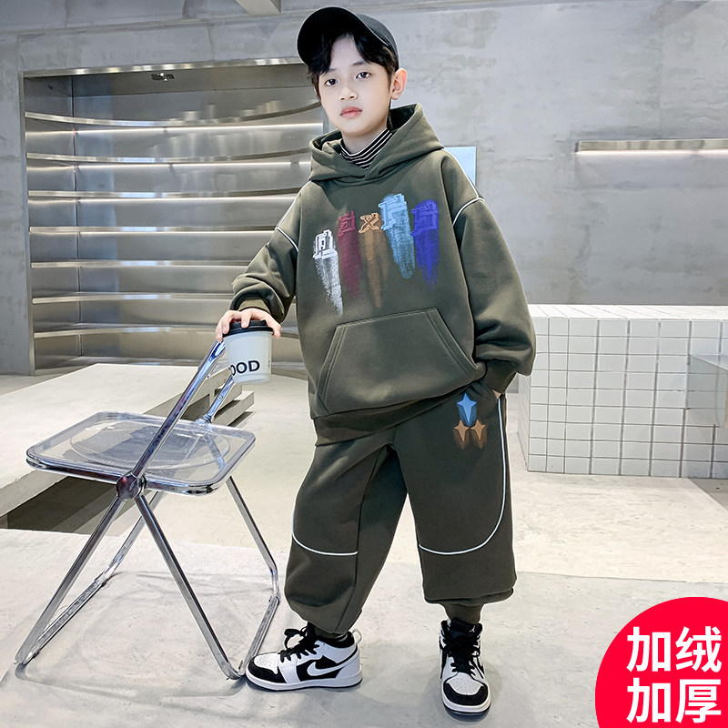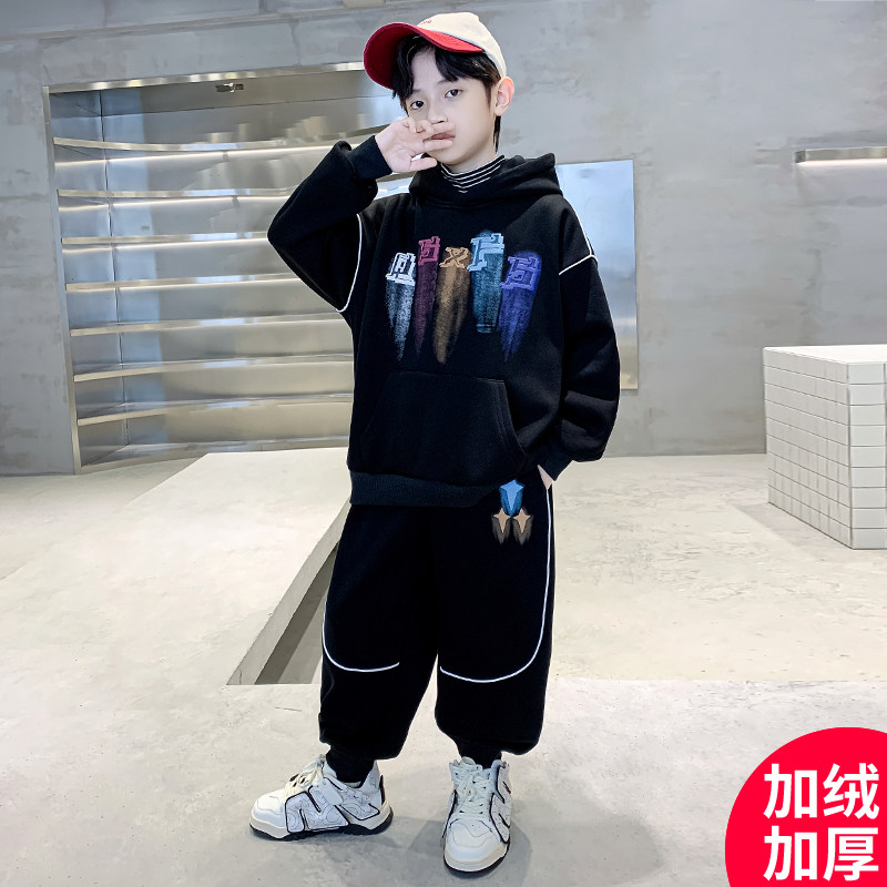 男童冬装套装2024新款男孩中大童儿童卫衣加绒加厚秋冬款酷帅洋气