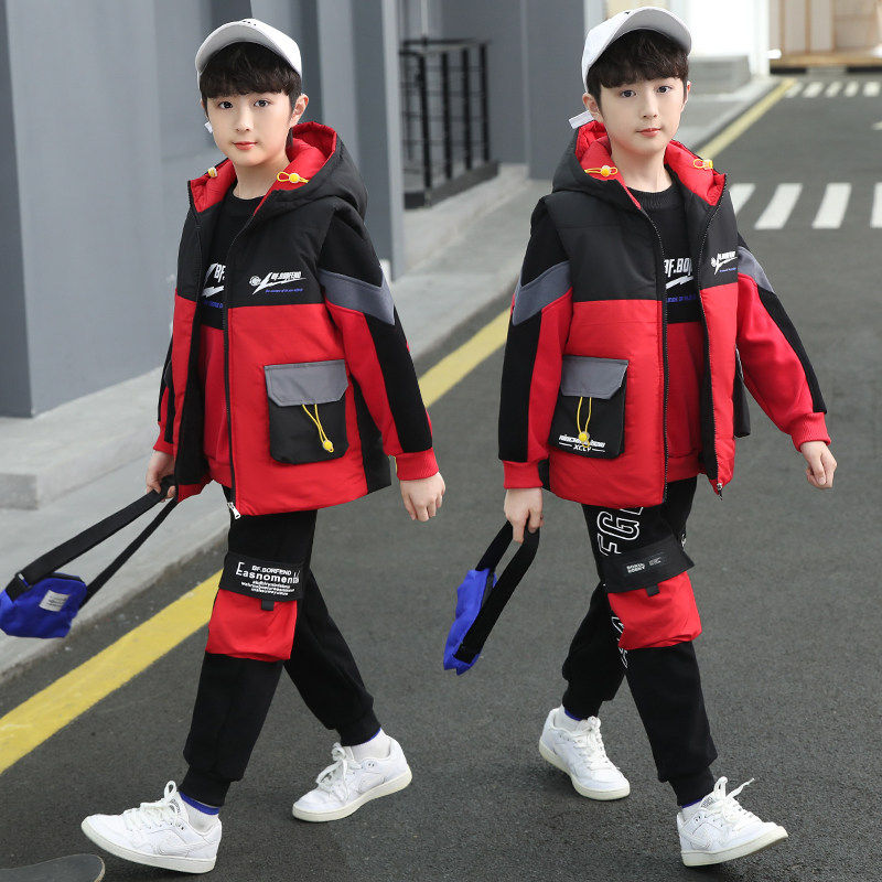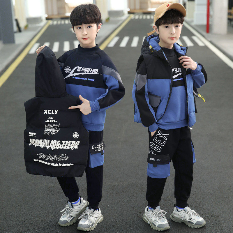 男孩套装新款秋冬三件套2025加绒儿童衣服童装炸街男童酷帅中大童