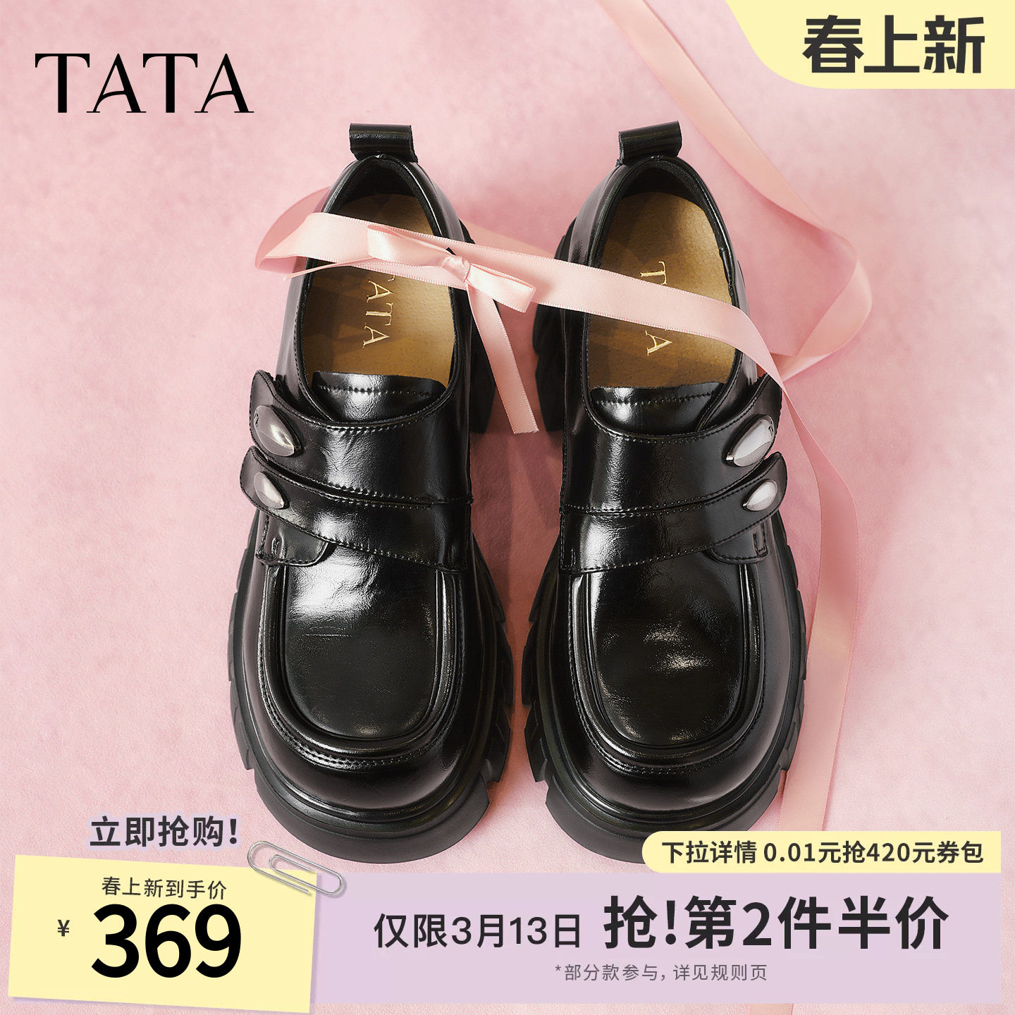 TATA他她钢琴家黑色乐福鞋女厚底小皮鞋单鞋增高JK鞋新款CHY08AM6