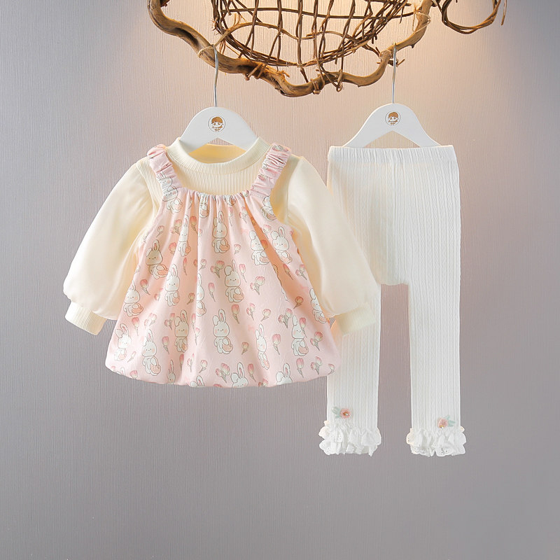 婴儿秋装0女童装1-3岁女宝宝洋气套装时髦春秋公主衣服裙子三件套