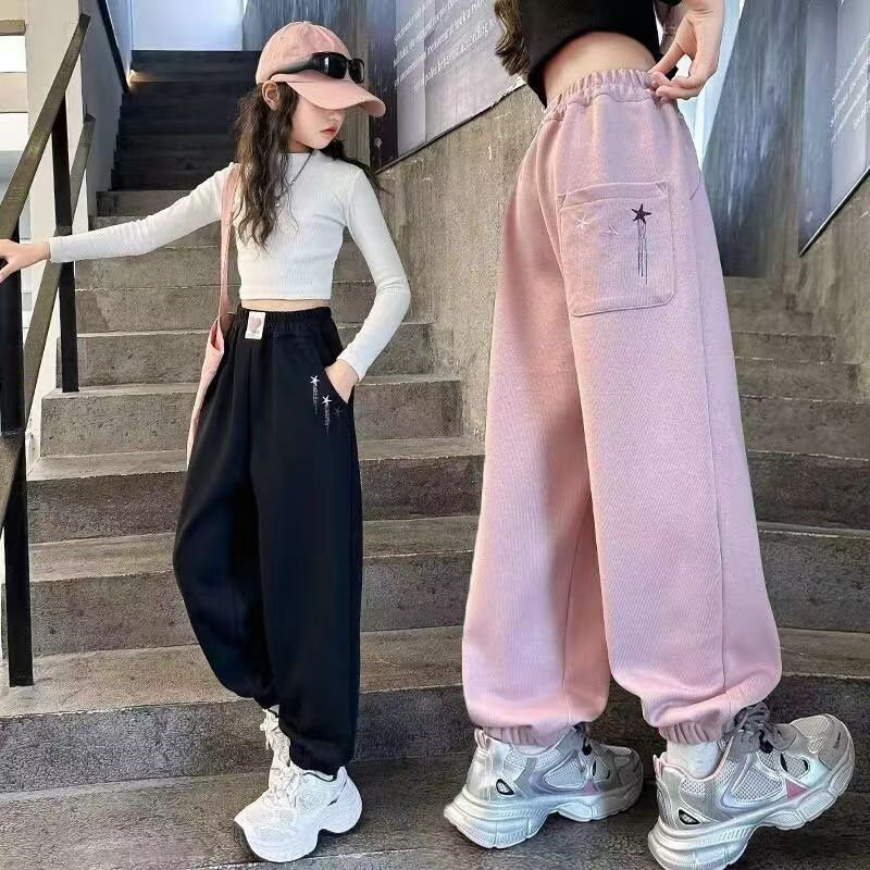 女童裤子春秋款2025新款时髦束脚裤中大童洋气宽松运动裤休闲长裤