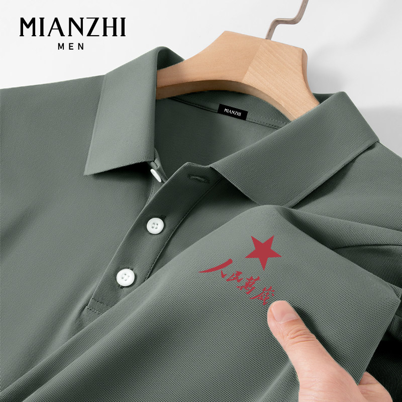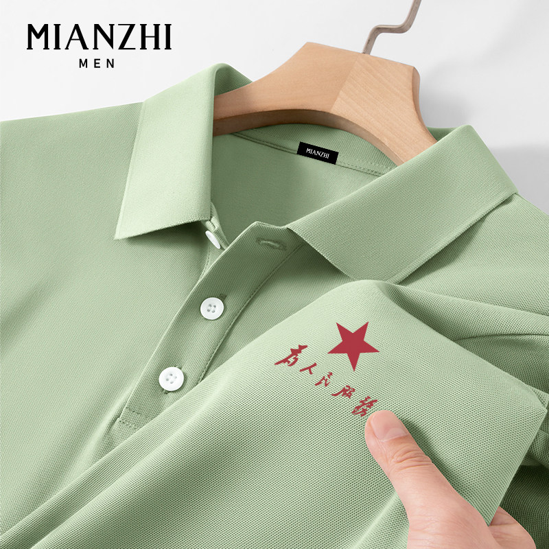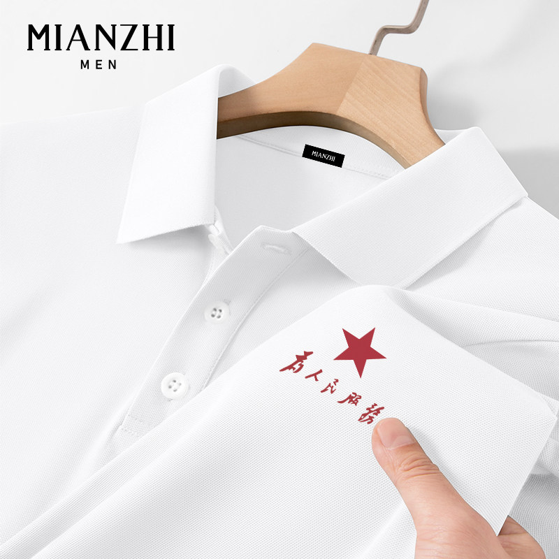 棉致为人民服务复古语录短袖POLO衫男士夏季青少年潮流防晒半截袖