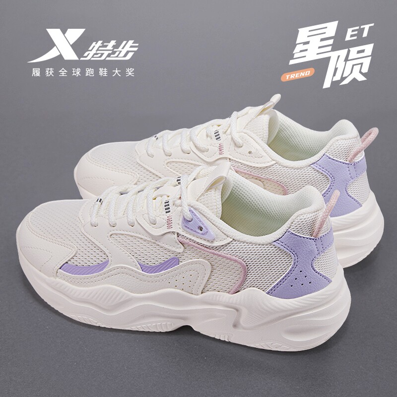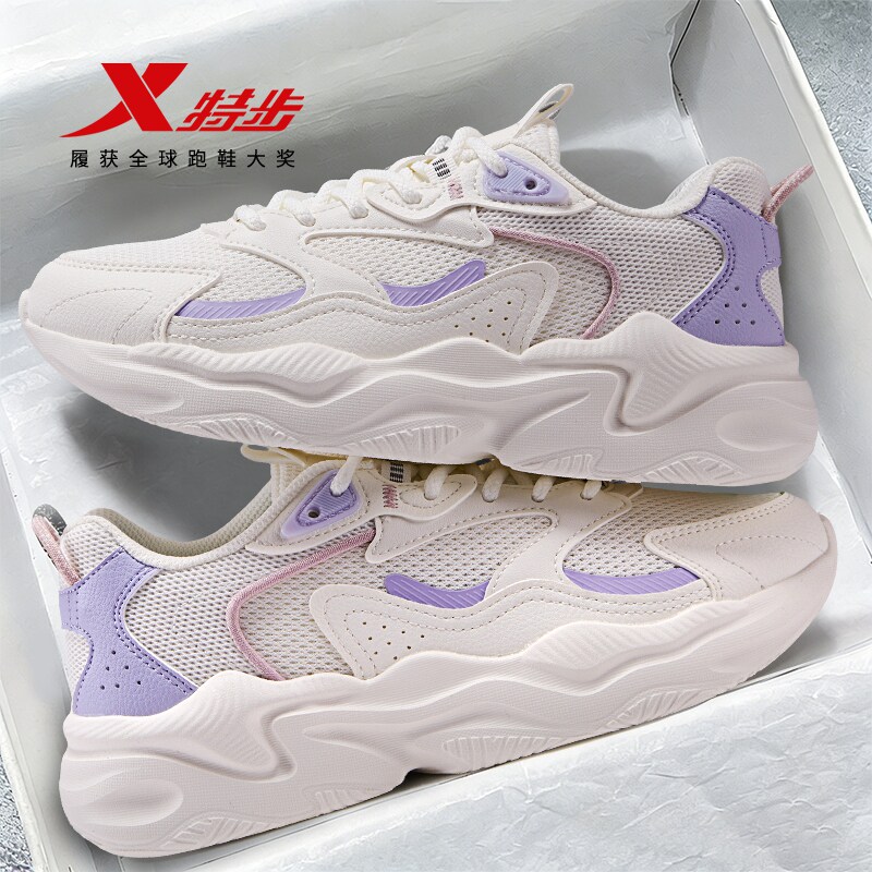 特步女鞋2026新款休闲运动鞋网面透气跑步鞋软底轻便厚底老爹鞋女
