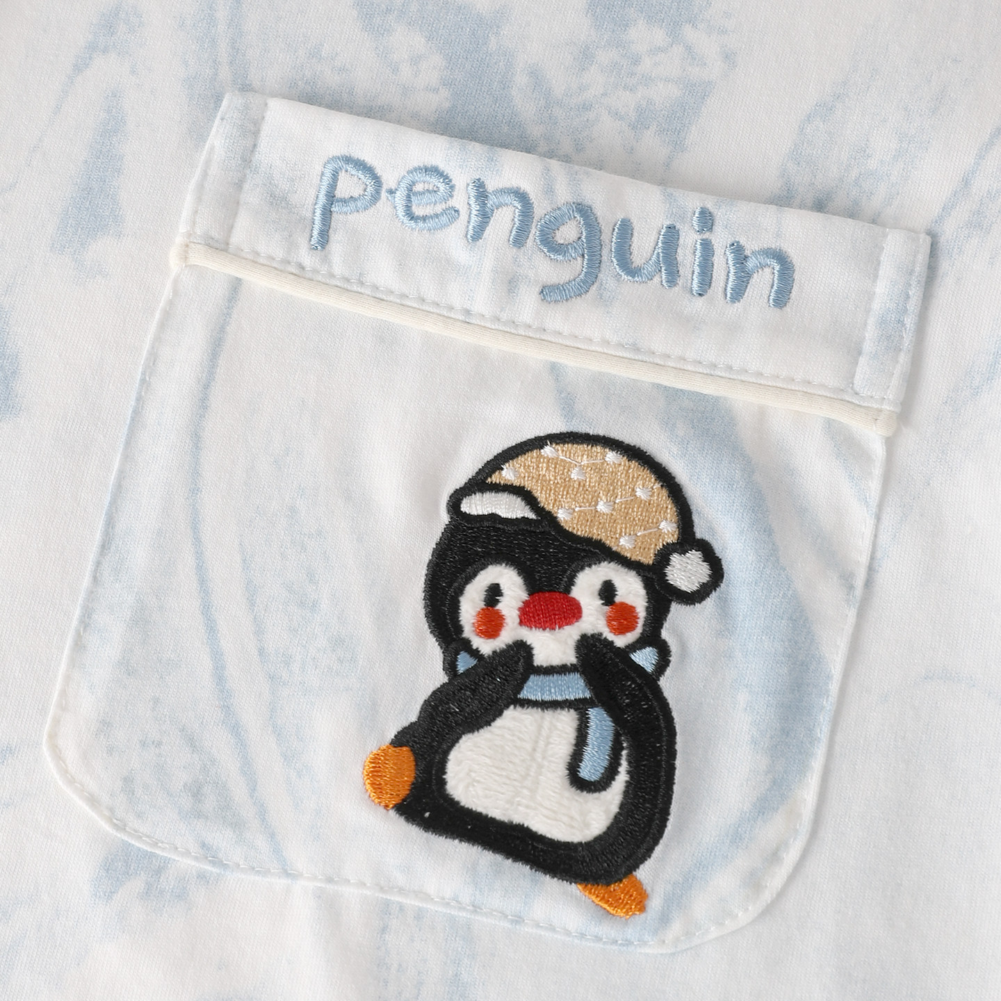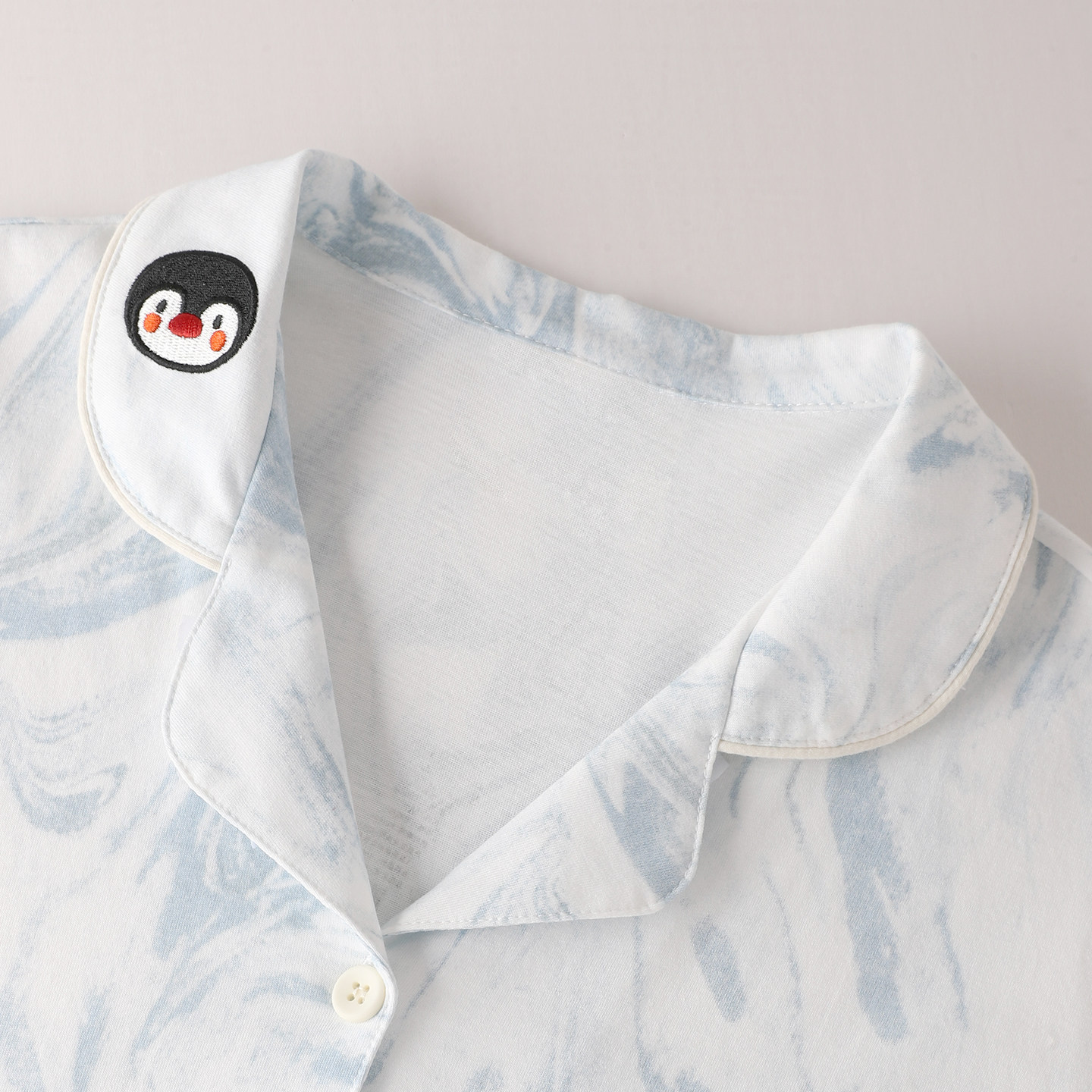 『企鹅油画』卡通纯棉睡衣女款2026新款夏薄短袖可外穿家居服套装