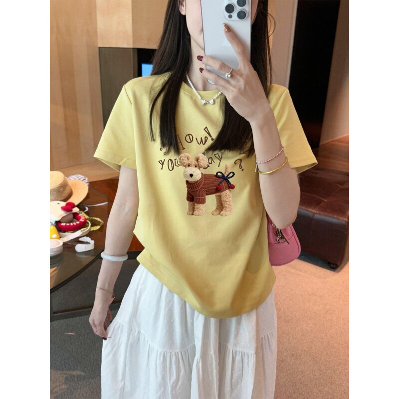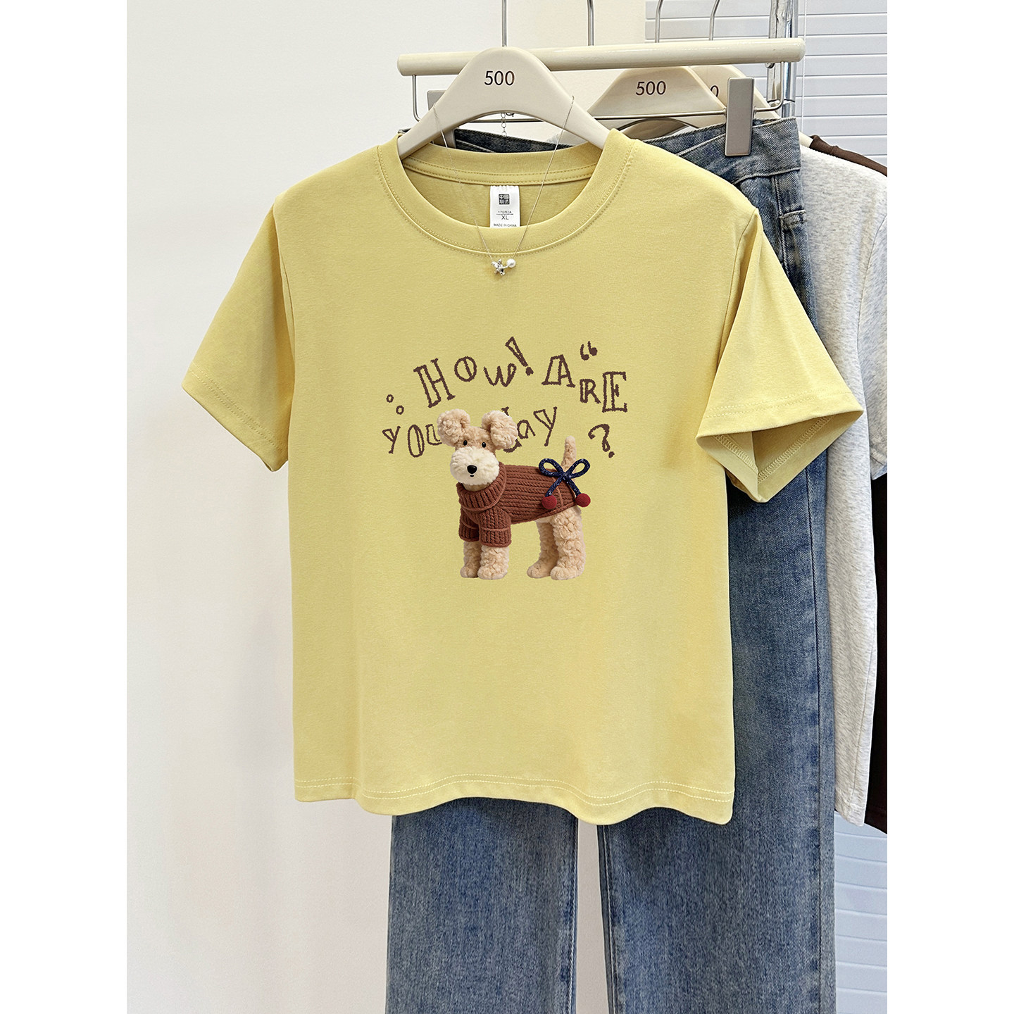 狗狗印花大码圆领正肩短袖t恤女款胖MM遮肚子显瘦时尚半袖上衣潮