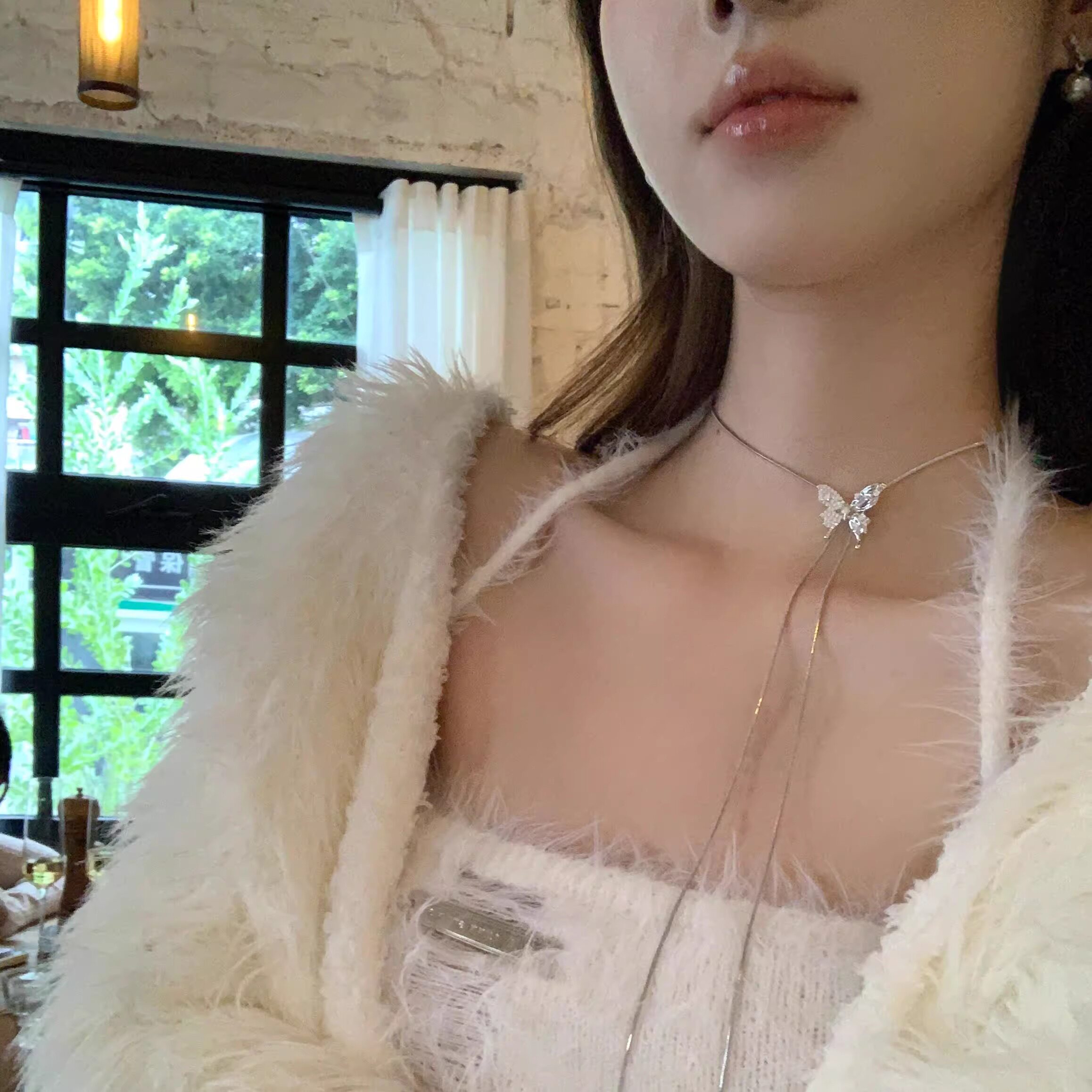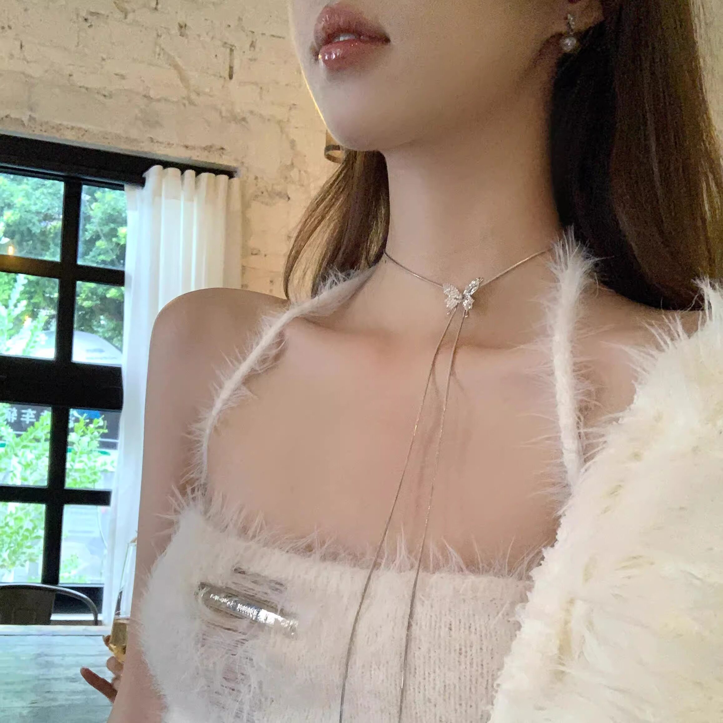 蝴蝶抽拉式项链配饰女款2026新款长款毛衣链设计感小众配裙子装饰