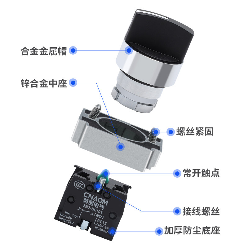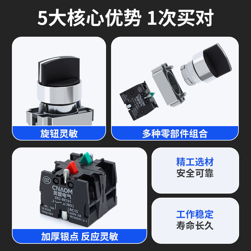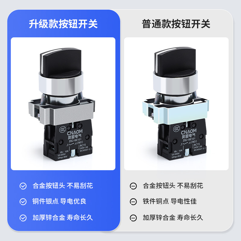 旋转按钮开关XB2-BD21旋钮两档三档BD33/45/53转换开关一常开常闭