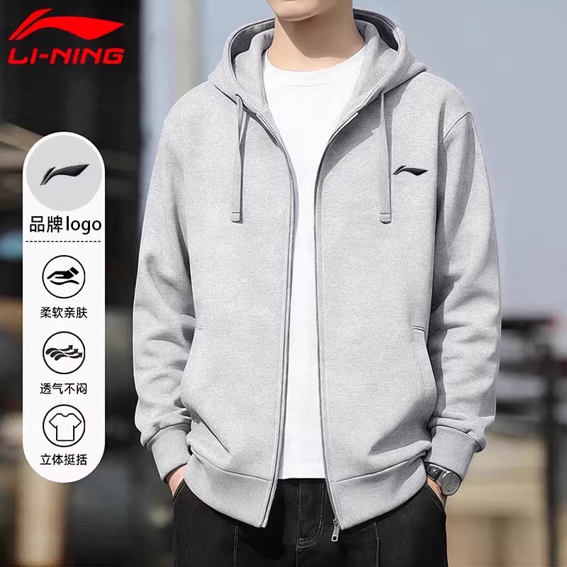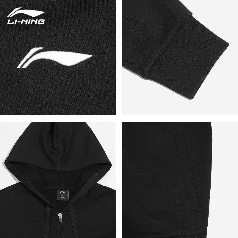 李宁外套男款春季新款黑色棉质舒适透气连帽卫衣男宽松休闲运动服