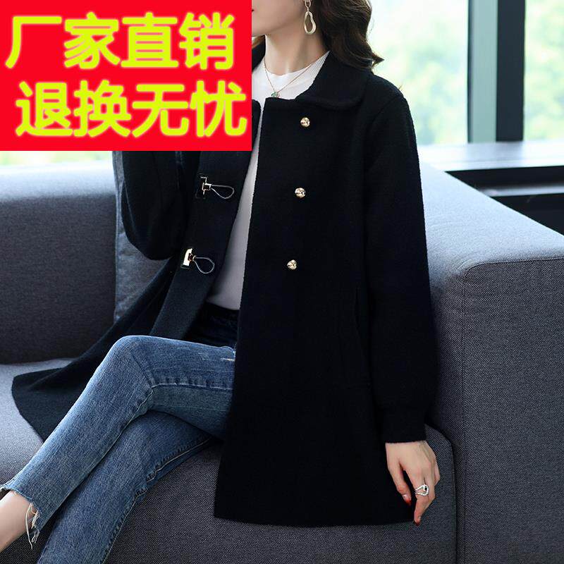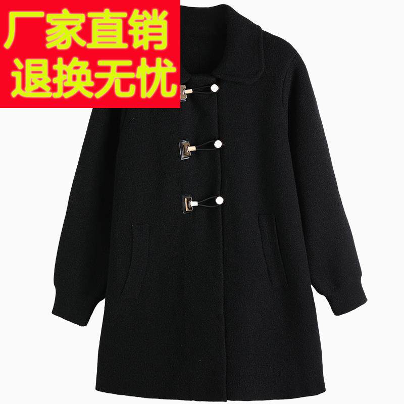 年轻妈妈秋冬毛呢外套胖女人加大码高档中长款双面羊绒大衣A字版