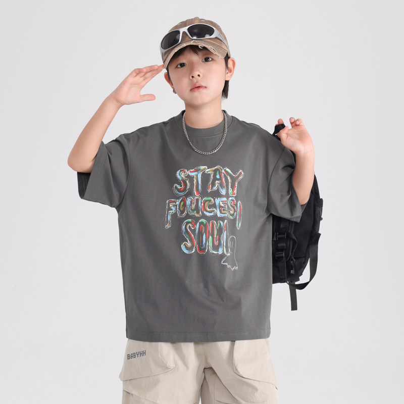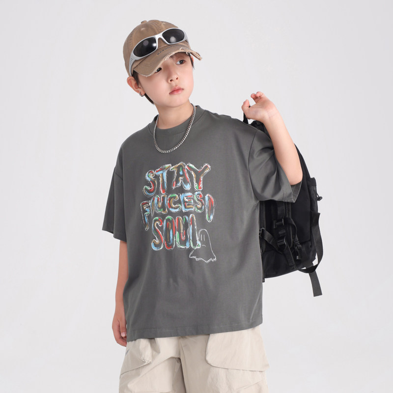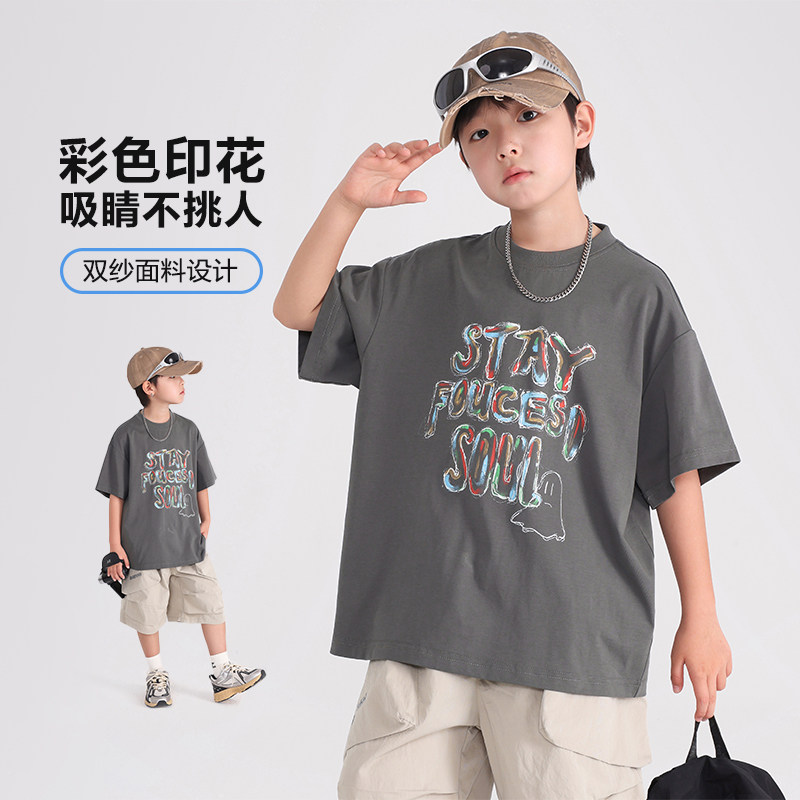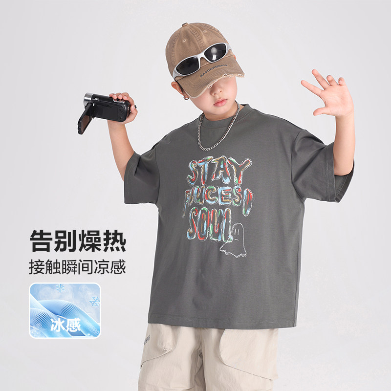 男童夏季潮牌涂鸦短袖t恤2026新款青少年儿童夏装冰感宽松薄上衣