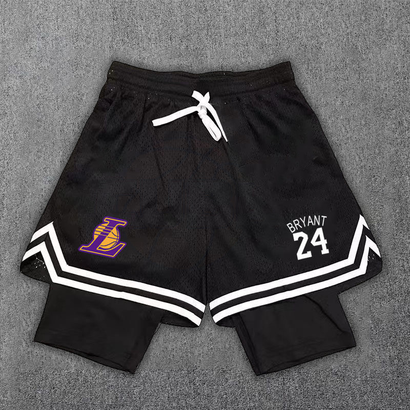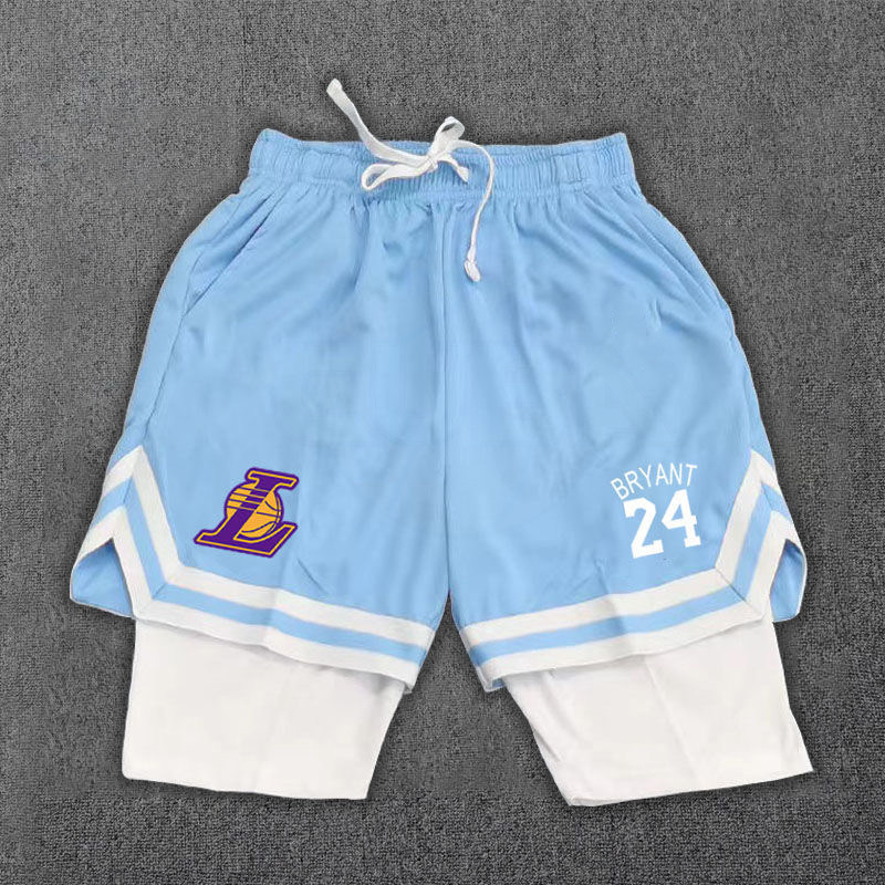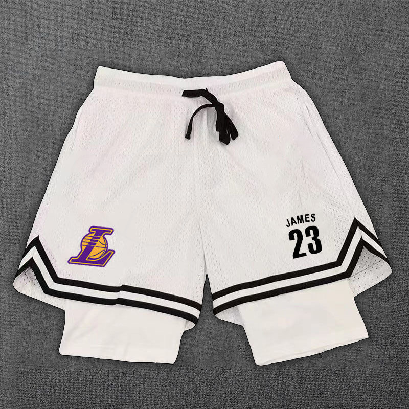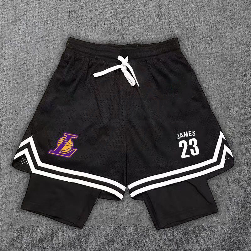 湖人科比詹姆斯23号美式篮球短裤运动健身训练假两件三分裤夏季男