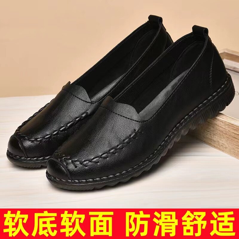 真皮软底防滑中老年人妈妈女单鞋老太太2026新款皮鞋平底舒适春季