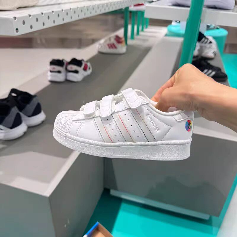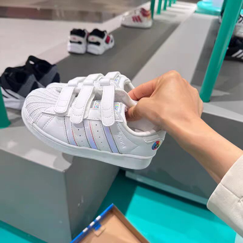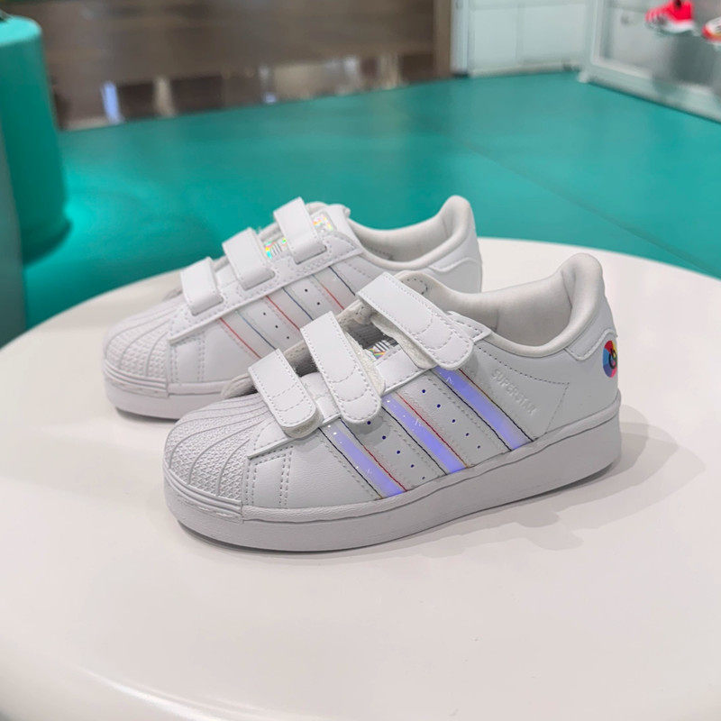 阿迪达斯三叶草男女童鞋发光鞋魔术贴贝壳头板鞋百搭小白鞋JI0509