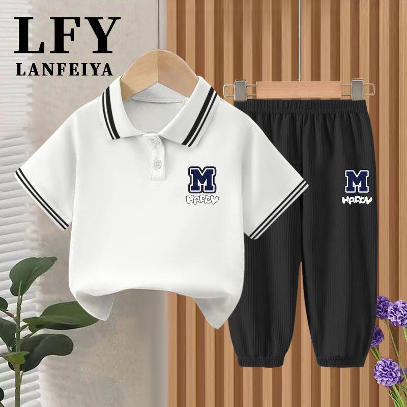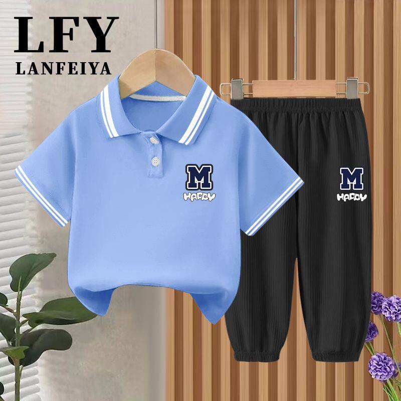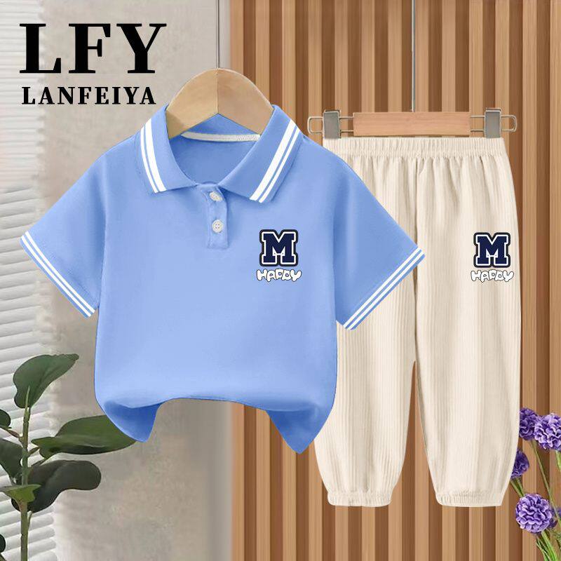 儿童POLO衫男童t恤短袖宝宝翻领半袖上衣男宝洋气T恤冰丝裤套装夏