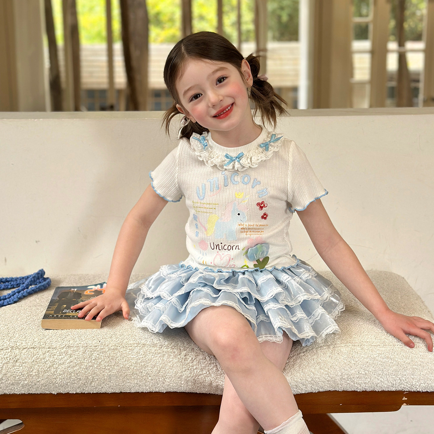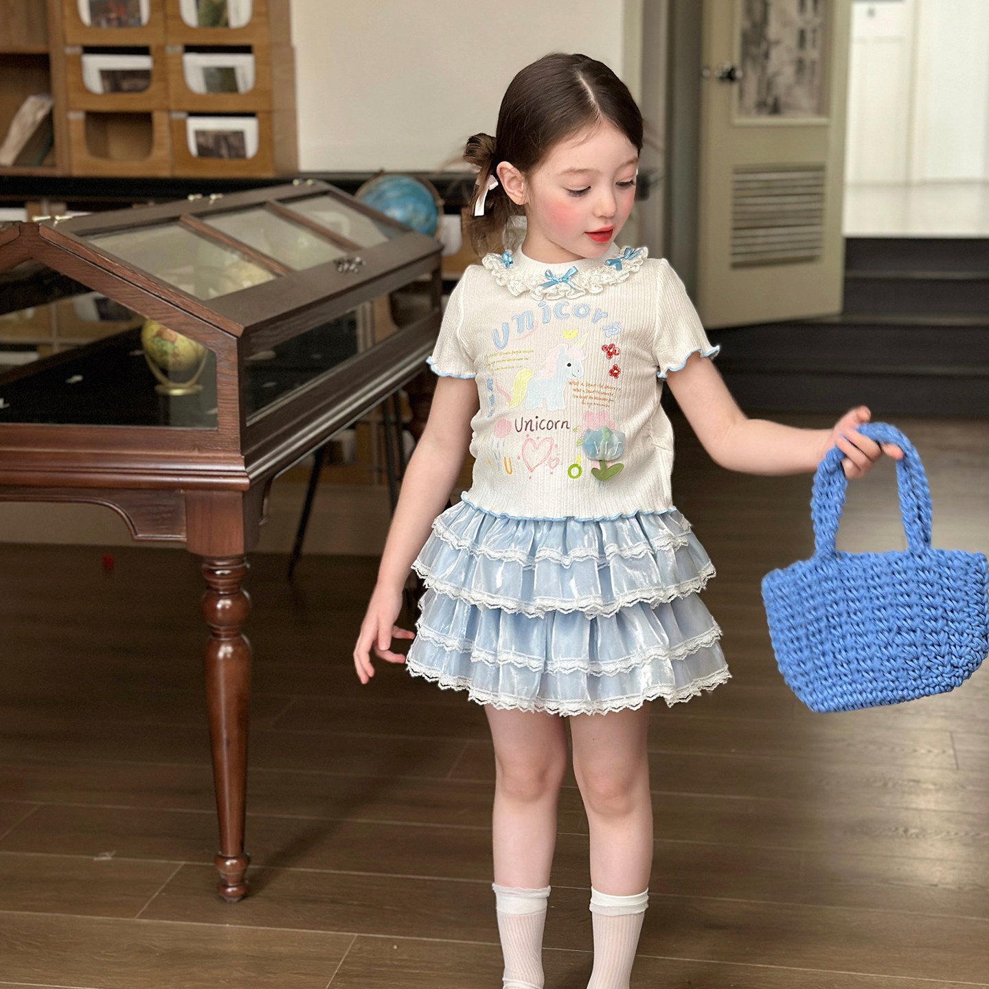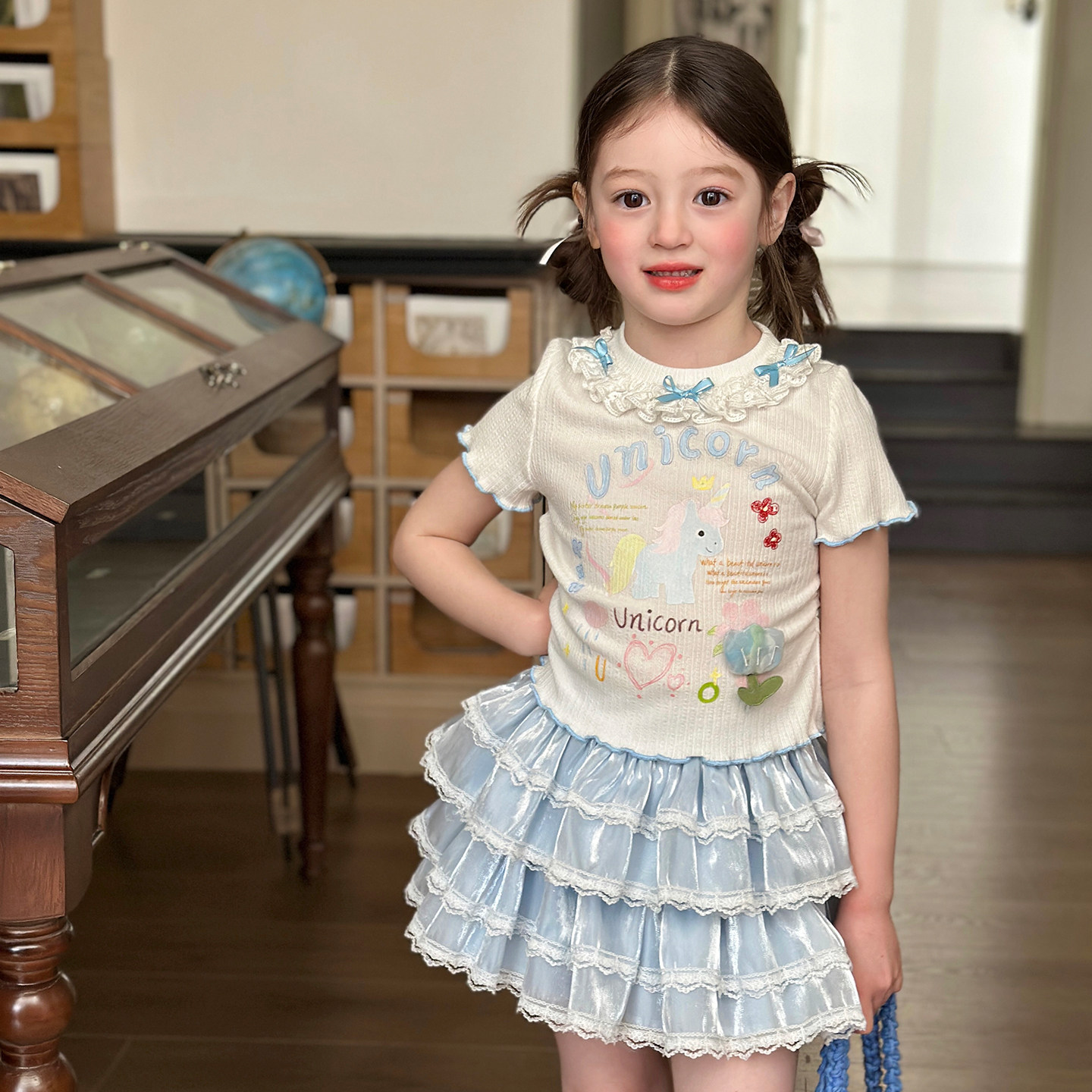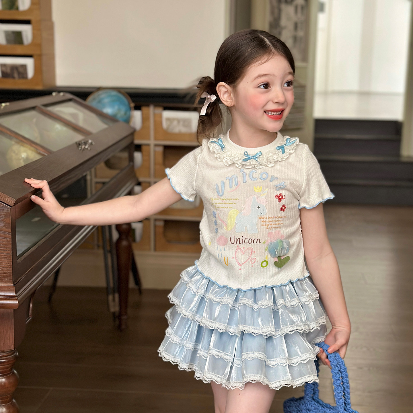 栀了成长记女童装甜美花边修身上衣2026春季儿童新款时髦短袖T恤
