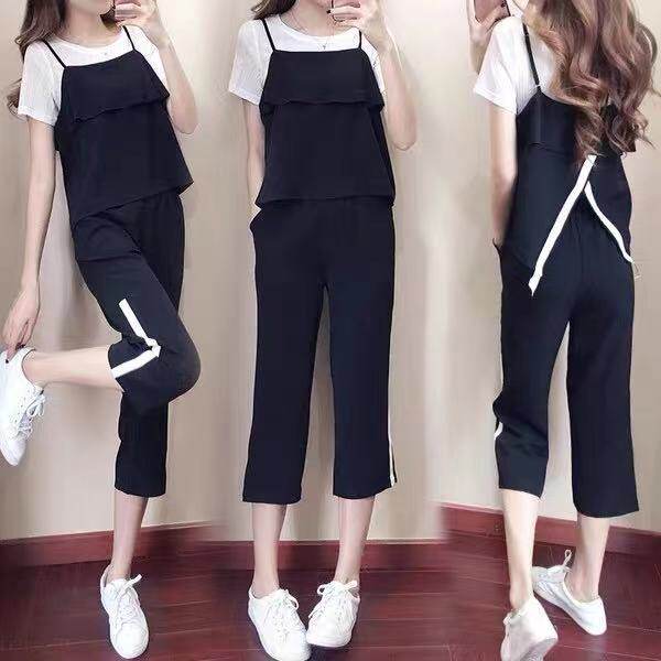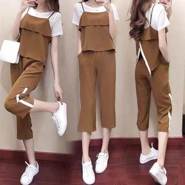 小个子七分裤休闲运动套装女2022夏季新款韩版大码时髦洋气三件套